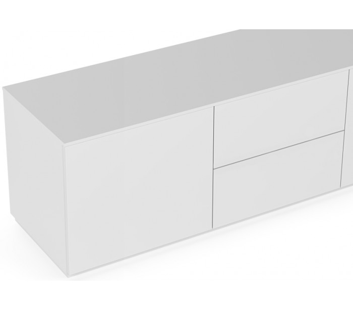 TemaHome Join tvbord udført i et design af mat hvid mdf og finér. Tvbordet måler 57 cm i højden og 180 x 50 cm i bredde og dybde og indeholder 2 skuffer samt 2 skabe, hvert med 2 hylderum.