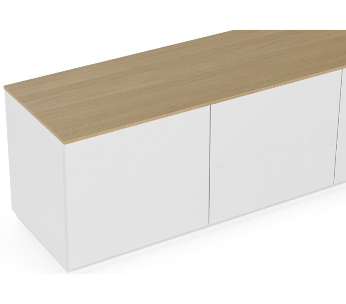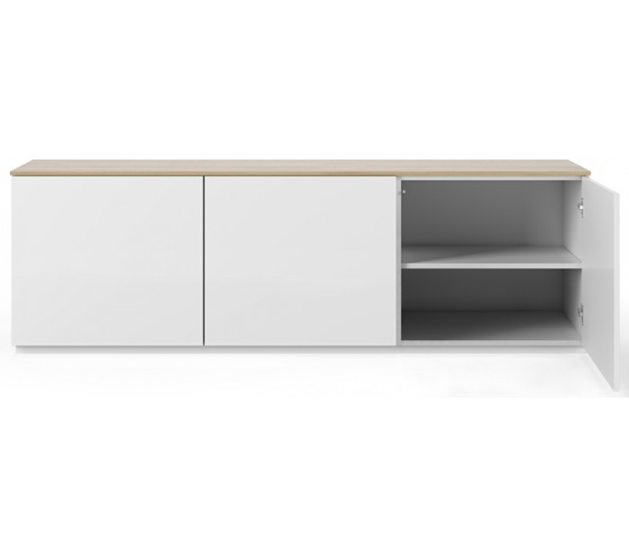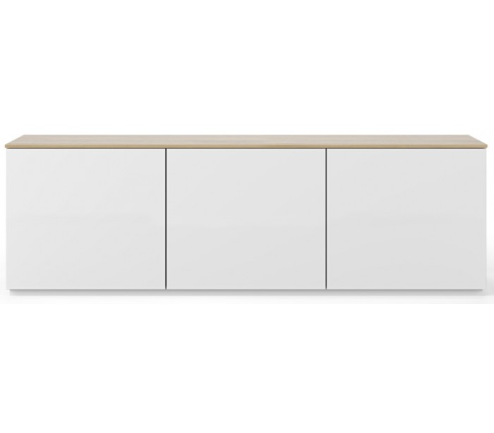 TemaHome Join tvbord udført i et design af mat hvid og egetræsfarvet mdf og finér. Tvbordet måler 57 cm i højden og 180 x 50 cm i bredde og dybde og indeholder 3 skabe, hvert med 2 hylderum.