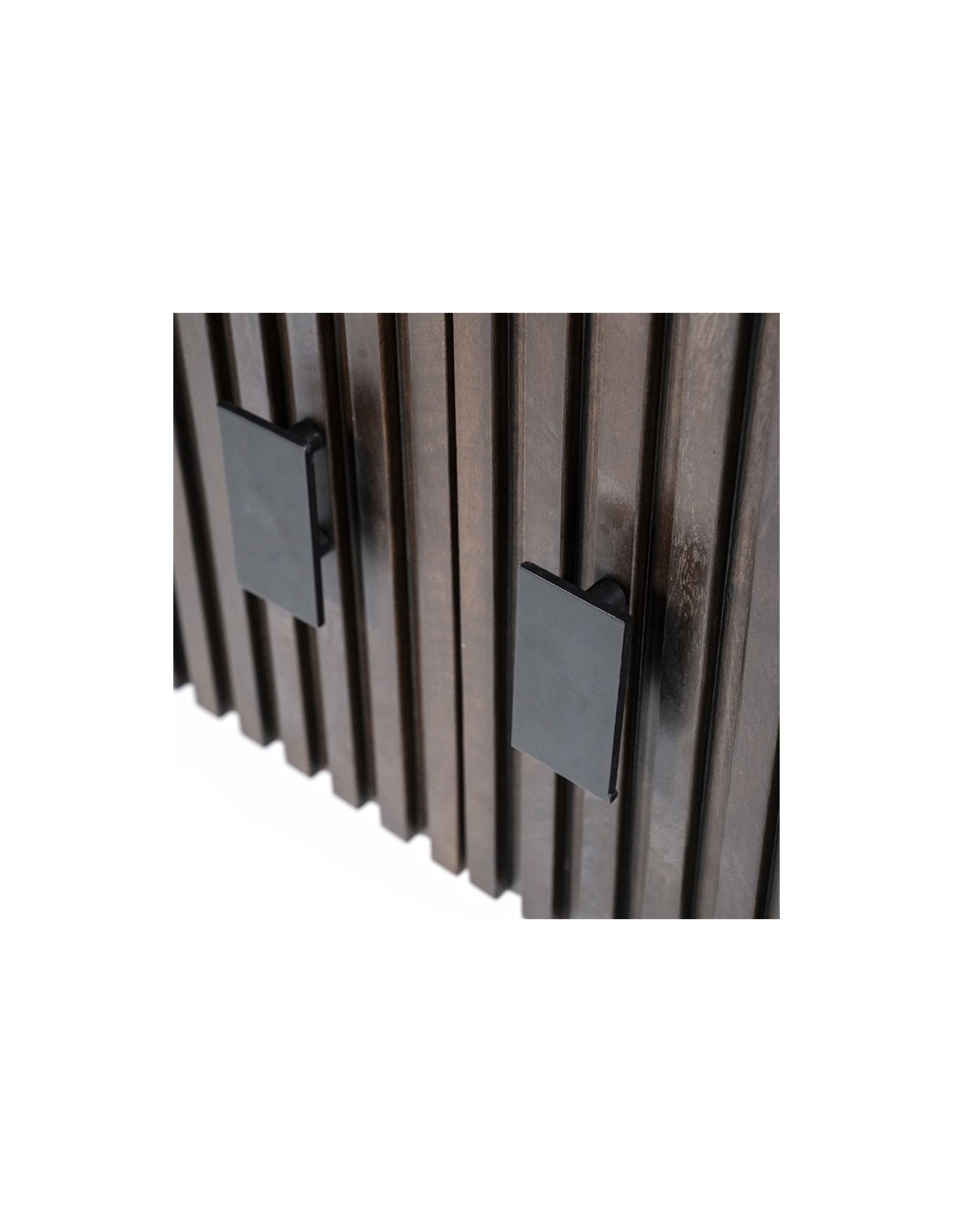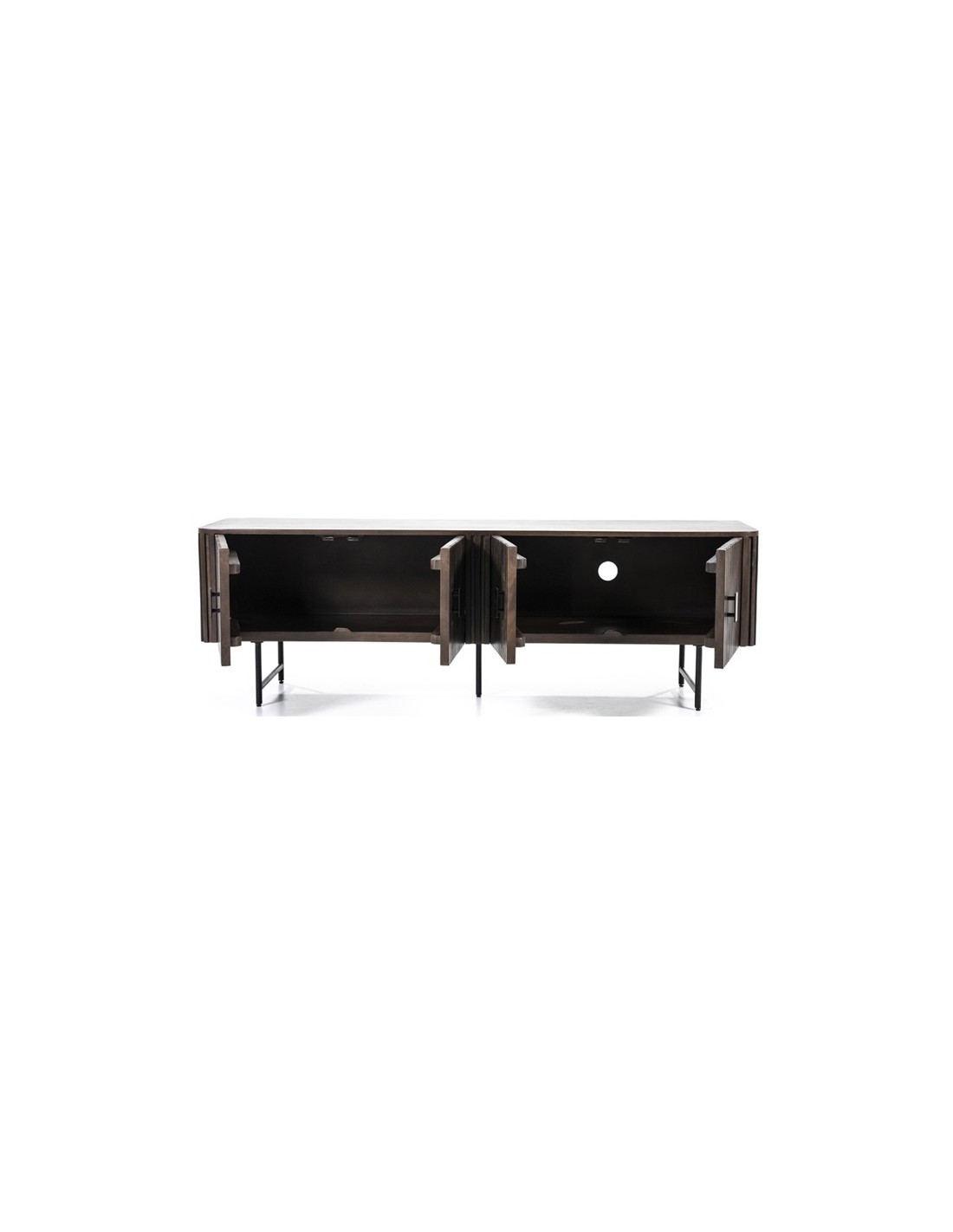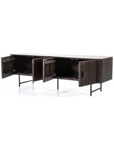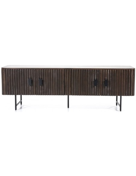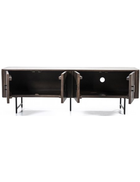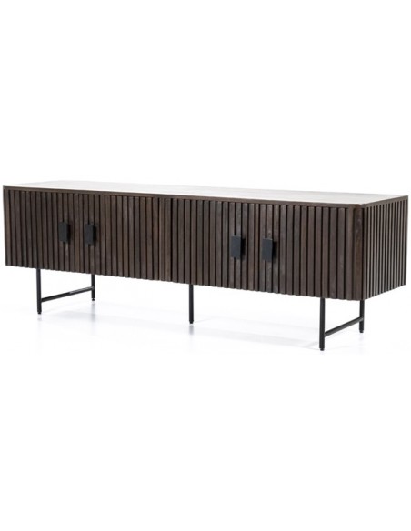 TV bord udført i et rustikt design af sortlakeret metal og mørkebrun lakeret mangotræ. Tvbordet måler 56 cm i højden og 170 x 45 cm i bredde og dybde. Tvbordet indeholder 2 dobbeltskabe, hvert med 1 hylderum.