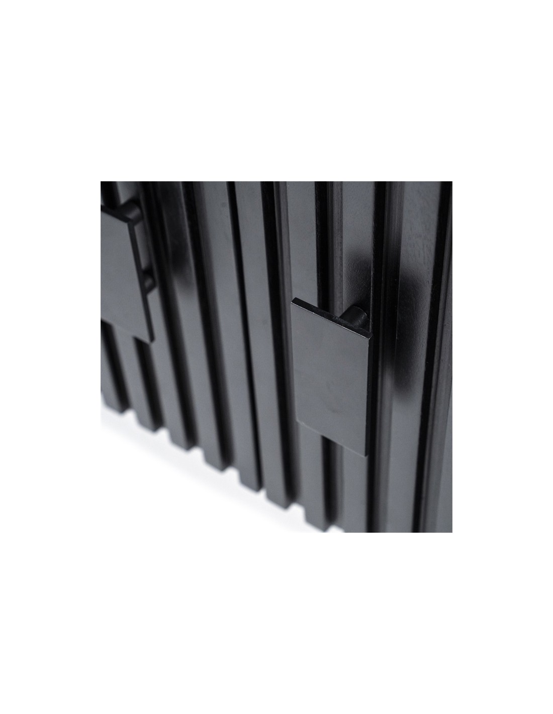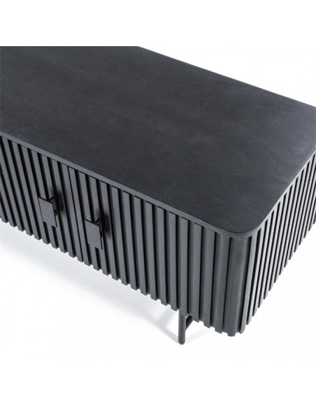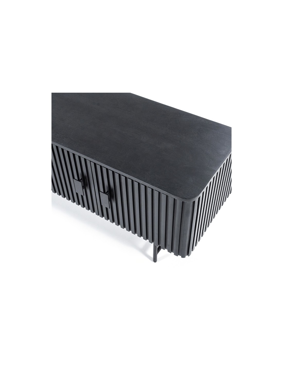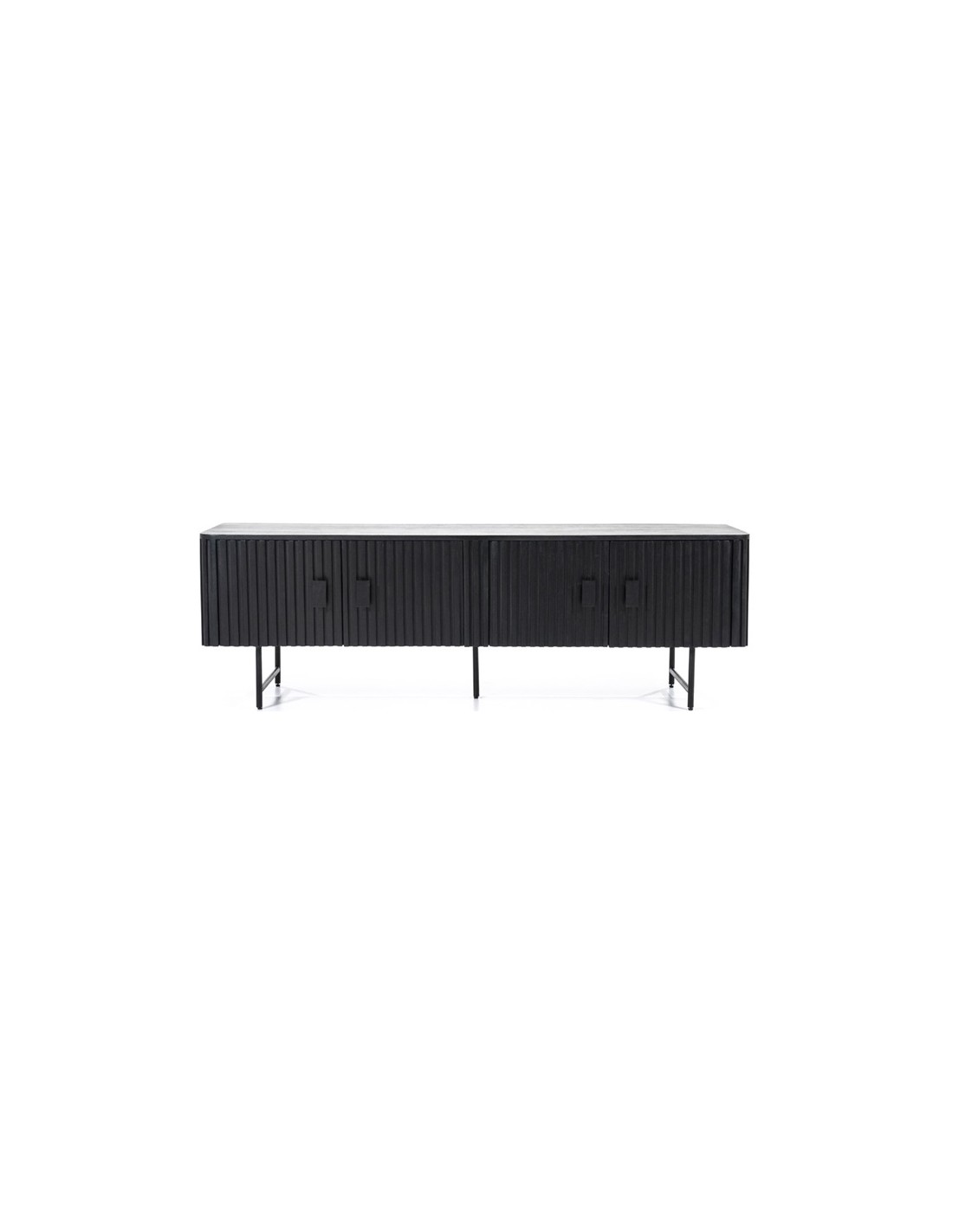 TV bord udført i et rustikt design af sortlakeret metal og sortlakeret mangotræ. Tvbordet måler 56 cm i højden og 170 x 45 cm i bredde og dybde. Tvbordet indeholder 2 dobbeltskabe, hvert med 1 hylderum.