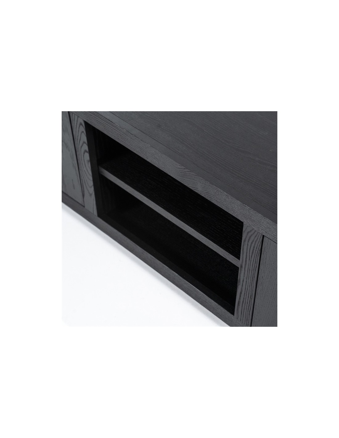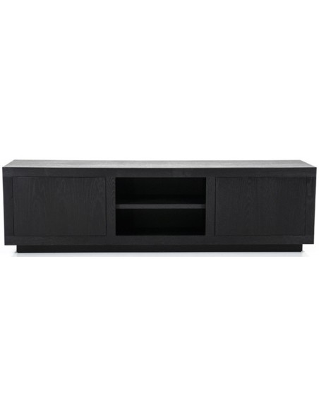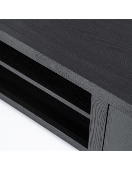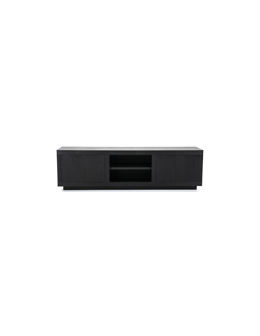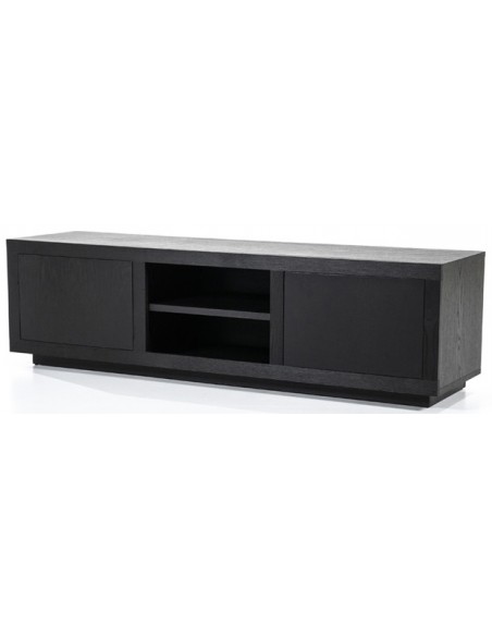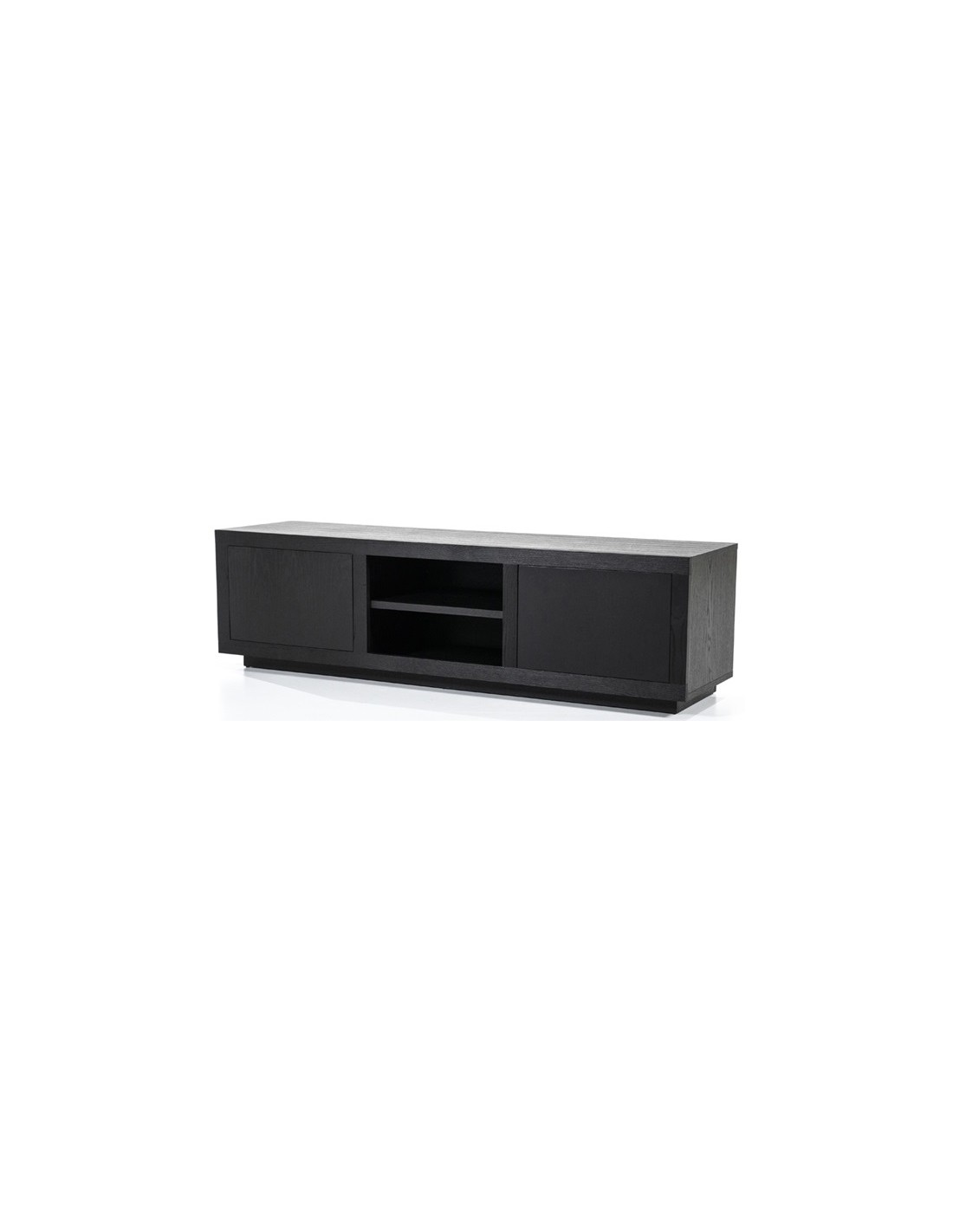 TV bord udført i et design af sortlakeret egetræ. Tvbordet måler 45 cm i højden og 160 x 42 cm i bredde og dybde. Tvbordet indeholder 2 åbne hylderum og 2 skabe, hvert med 1 hylderum.