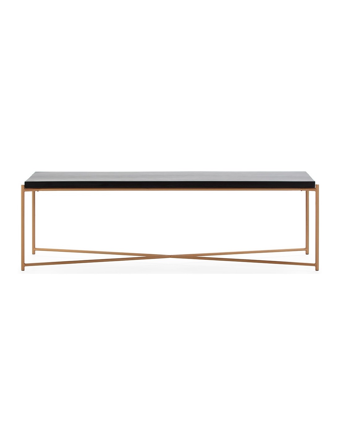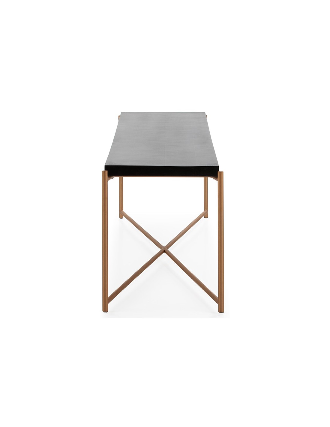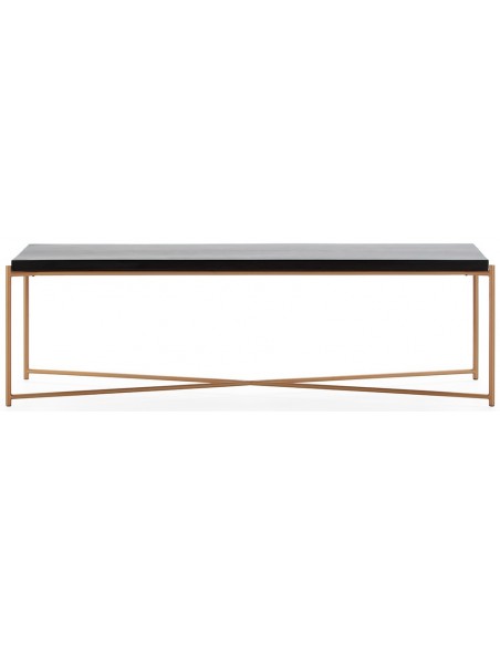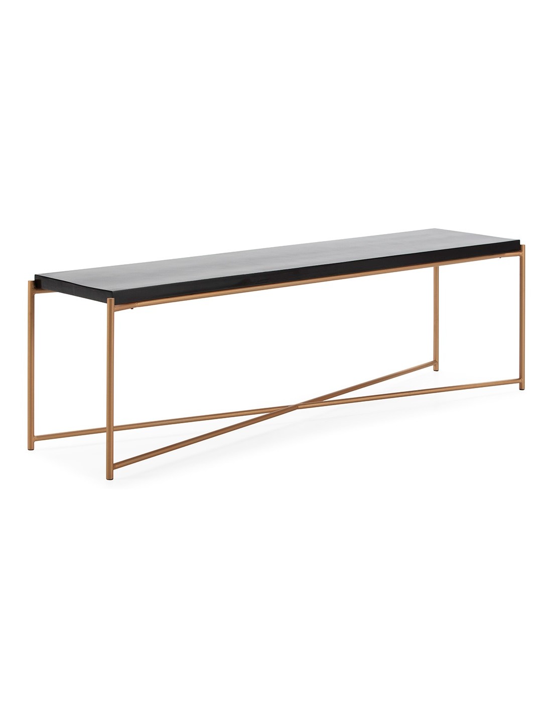 Tvbord udført i et design i antik gylden lakeret metal med bordplade i sort træ. Tvbordet måler 160 x 40 cm i bredde og dybde og 50 cm i højden.