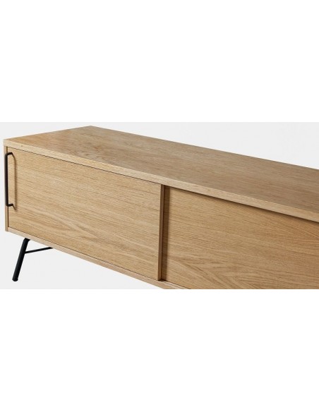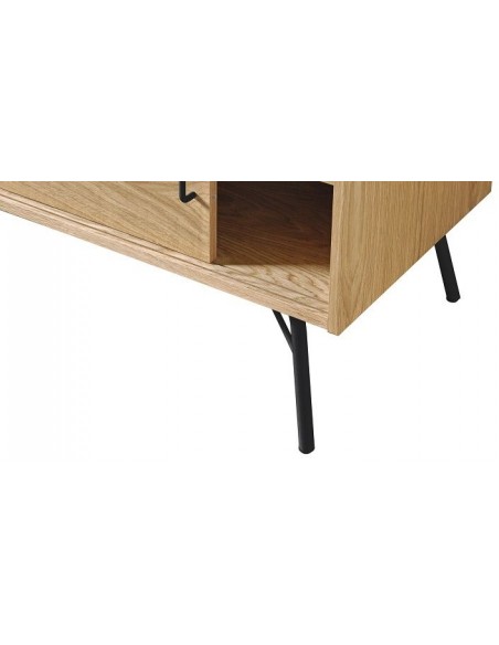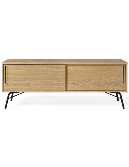 Ashburn tvbord udført i et moderne design med 2 skydelåger der gemmer på 2 hylderum. Tvbordet er fremstillet i metal og egetræsfinér.