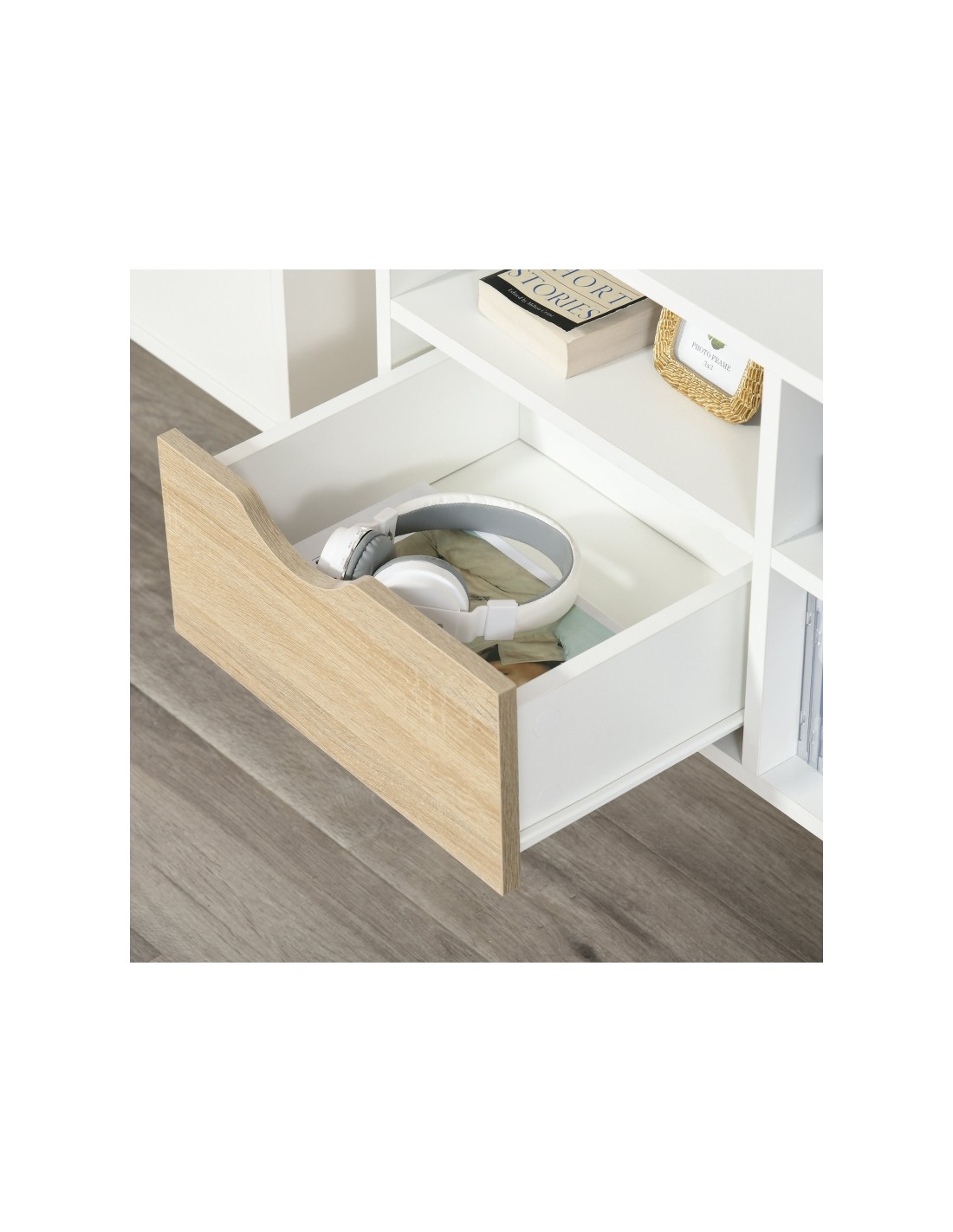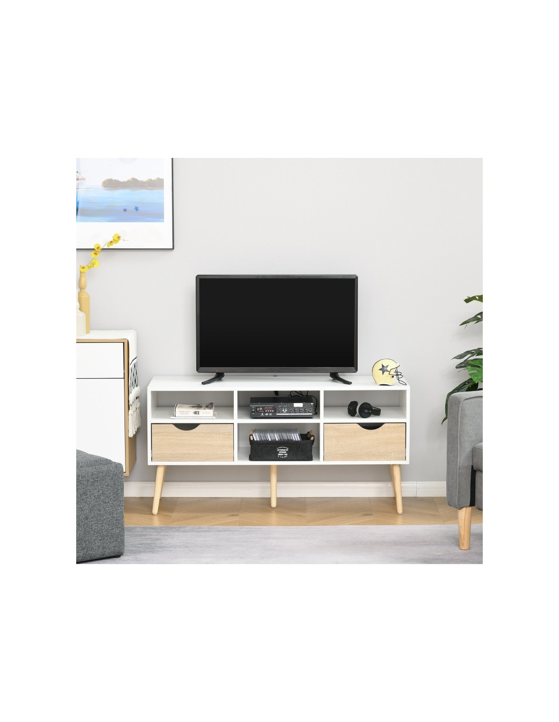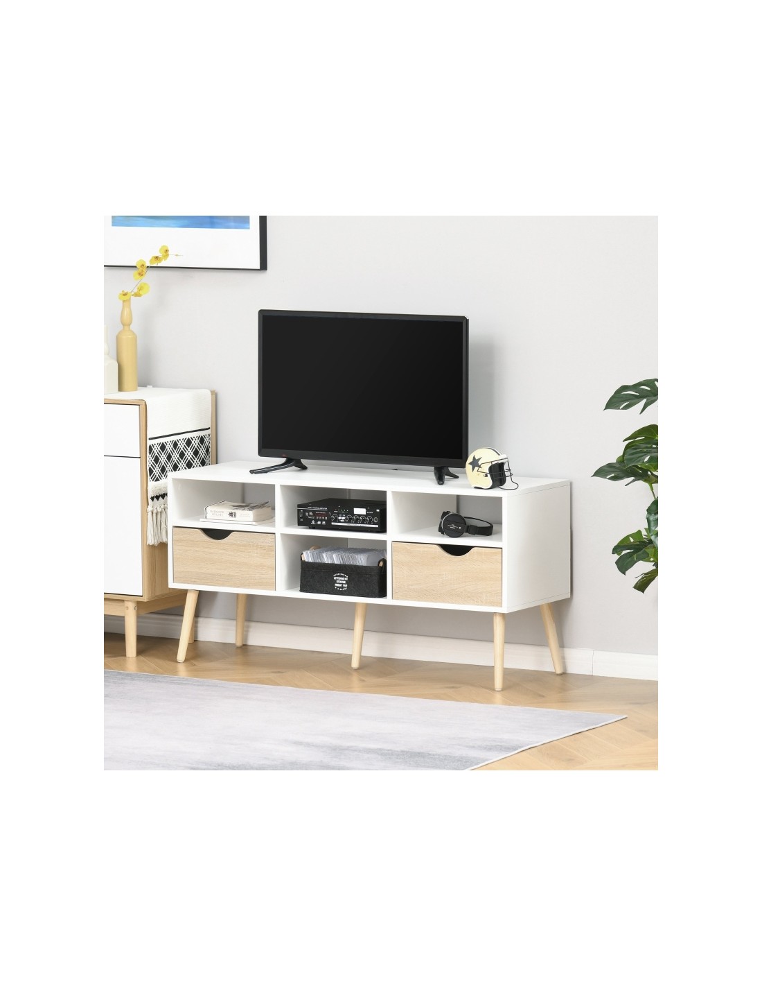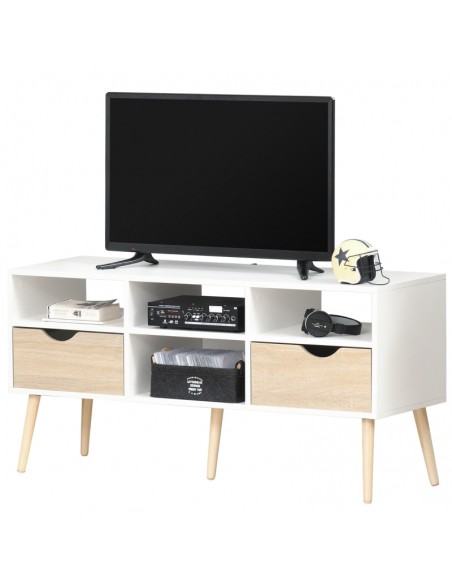 TV Bord i træ og møbelplade B117 cm - Hvid/Natur