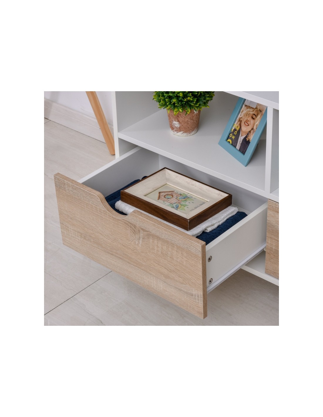 TV Bord i træ og møbelplade B99 cm - Hvid/Natur