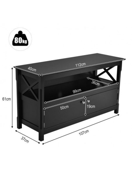 Tvbord udført i et design af sortlakeret mdf. Tvbordet måler 61 cm i højden og 112 x 40 cm i bredde og dybde.