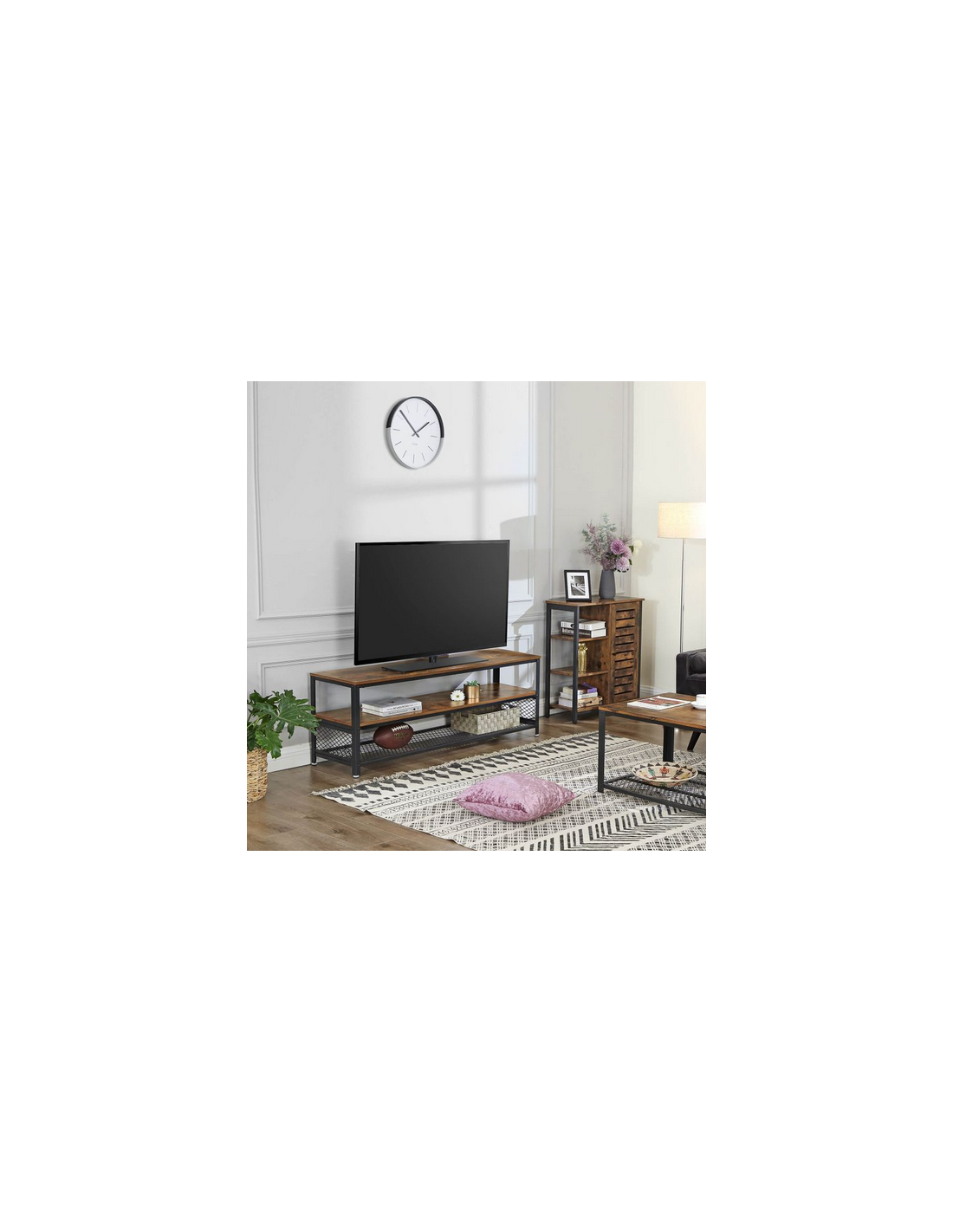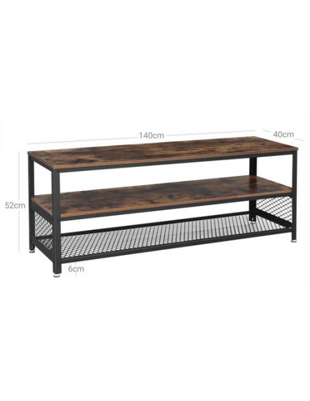 Tvbord i metal og møbelplade H52 x B140 x D40 cm - Sort/Brun