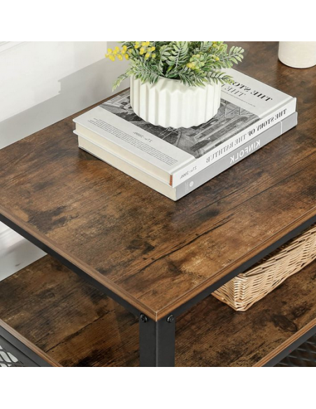 Tvbord udført i et design af sortlakeret metal og brun møbelplade. Tvbordet måler 52 cm i højden og 140 x 40 cm i bredde og dybde.