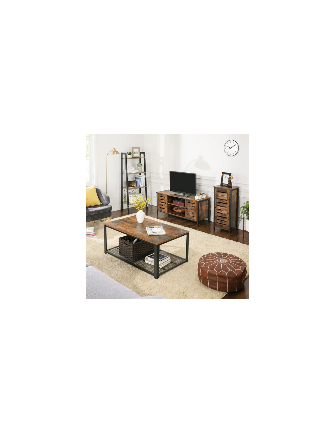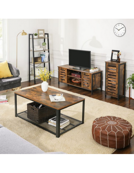 Tvbord i metal og møbelplade H50 x B110 x D40 cm - Sort/Brun