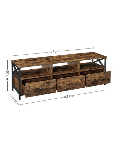Tvbord i metal og møbelplade H50 x B147 x D40 cm - Sort/Brun