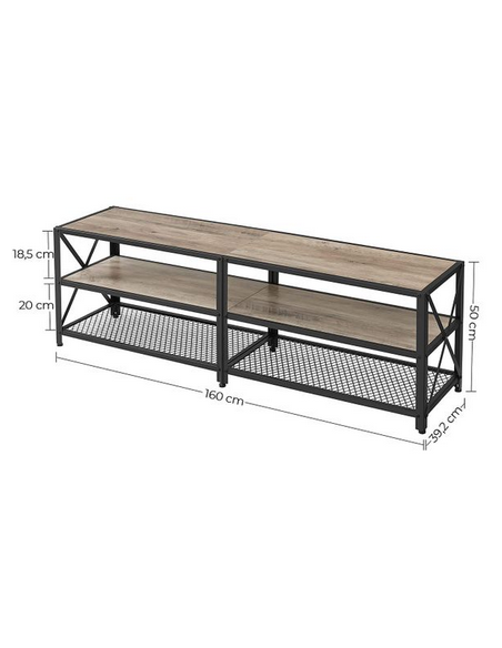 Tvbord i metal og møbelplade H50 x B160 x D39,2 cm - Sort/Grå