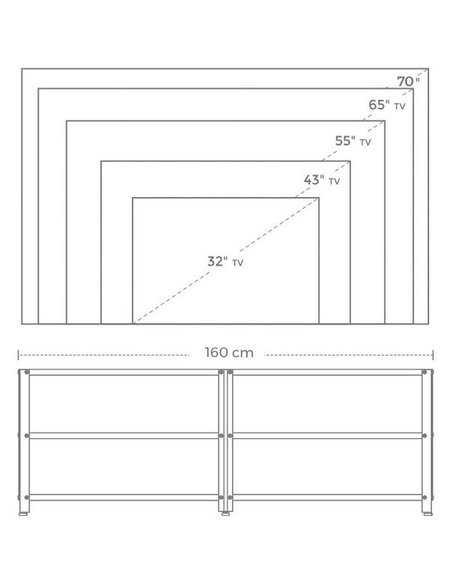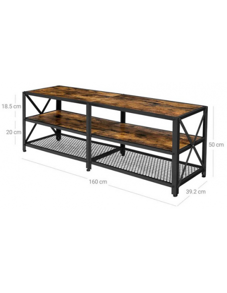 Tvbord udført i et design af sortlakeret metal og brun møbelplade. Tvbordet måler 50 cm i højden og 160 x 39,2 cm i bredde og dybde.