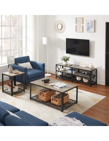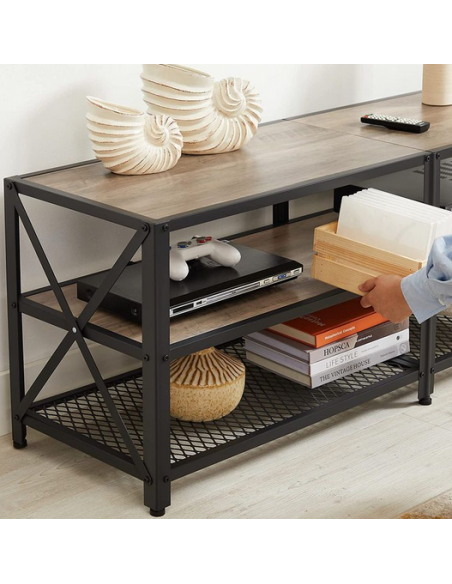 Tvbord i metal og møbelplade H50 x B140 x D39,2 cm - Sort/Grå