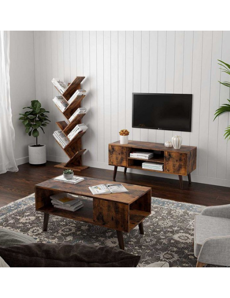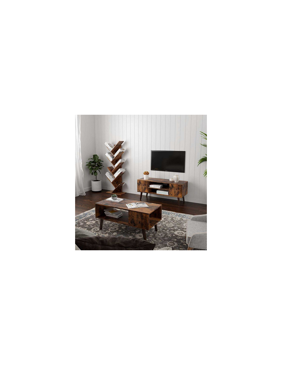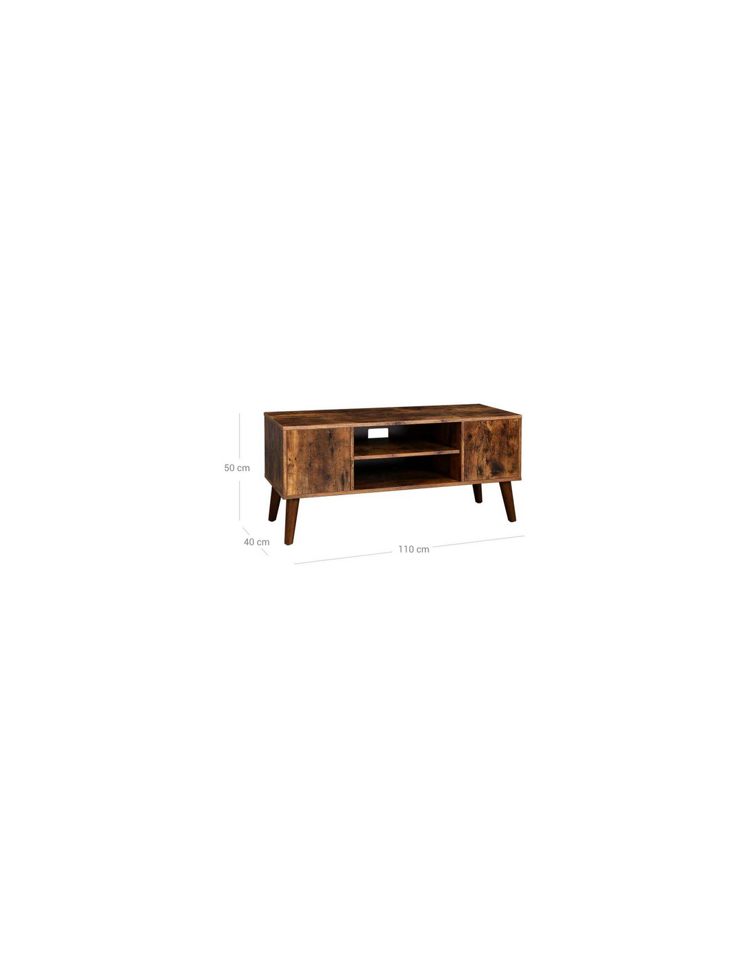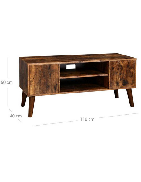 Tvbord udført i et design af brun møbelplade. Tvbordet måler 50 cm i højden og 110 x 40 cm i bredde og dybde.