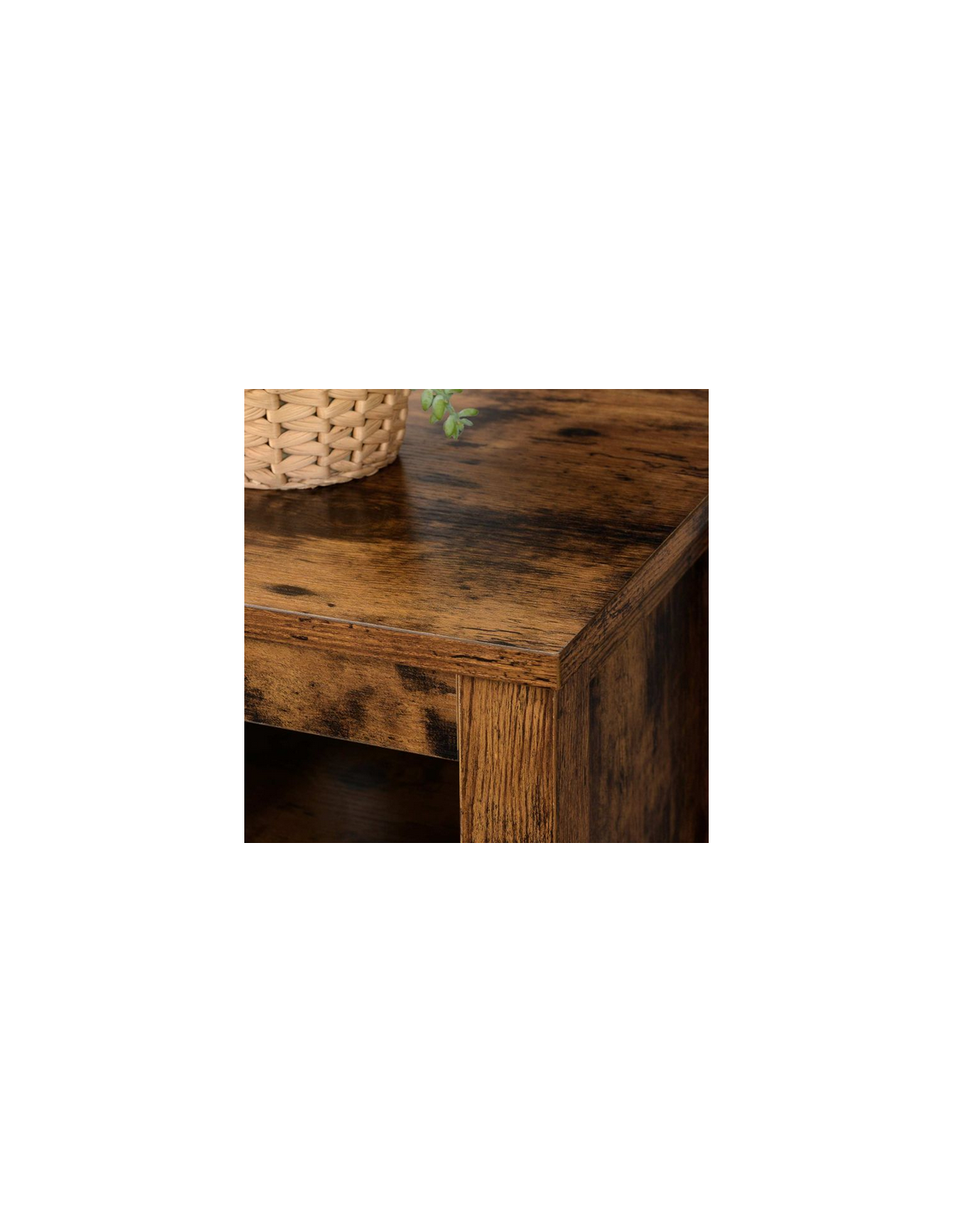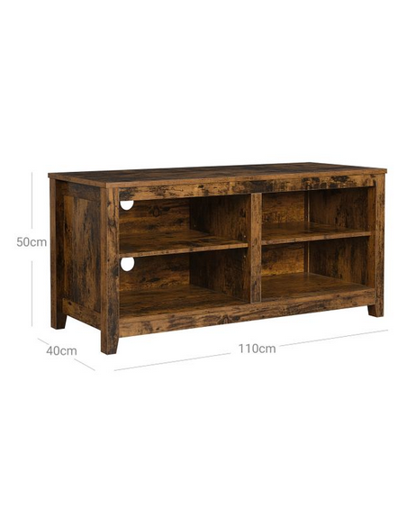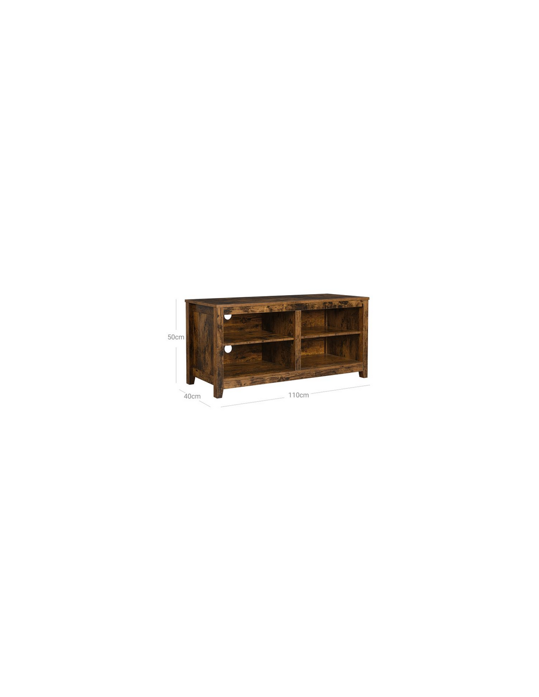 Tvbord udført i et design af brun møbelplade. Tvbordet måler 50 cm i højden og 110 x 40 cm i bredde og dybde.