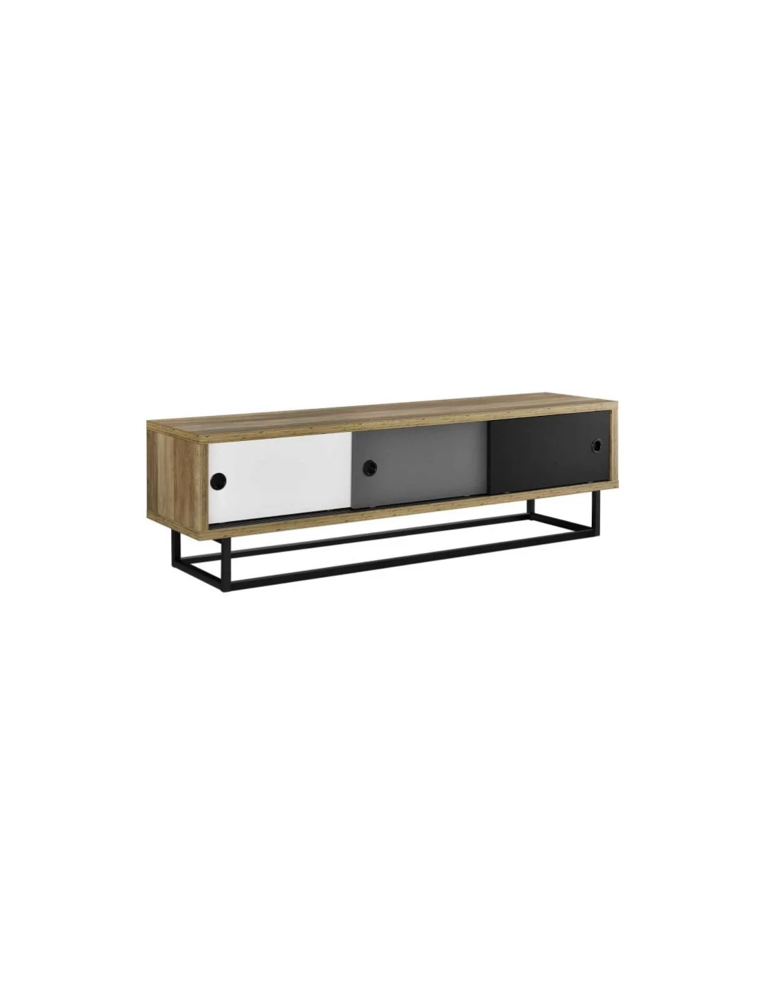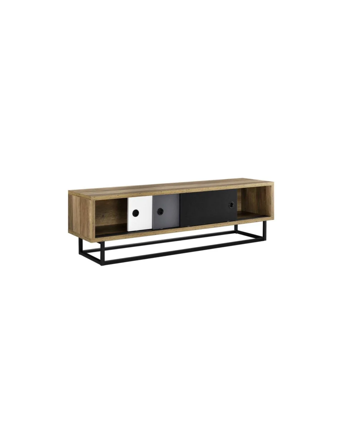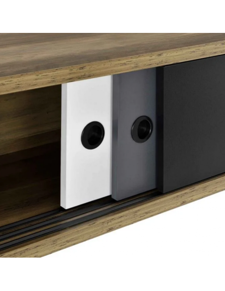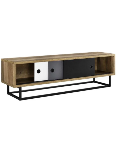 Tvbord i metal og møbelplade H41 x B140 x D35 cm - Mørk natur/Multi