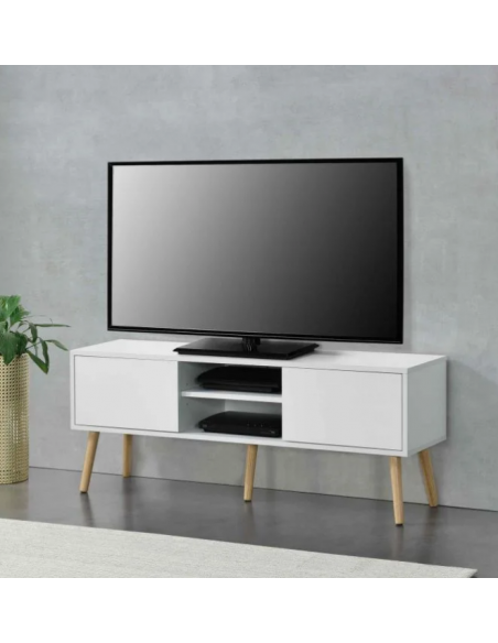 Tvbord i træ og møbelplade H46,5 x B120 x D29,5 cm - Hvid/Natur