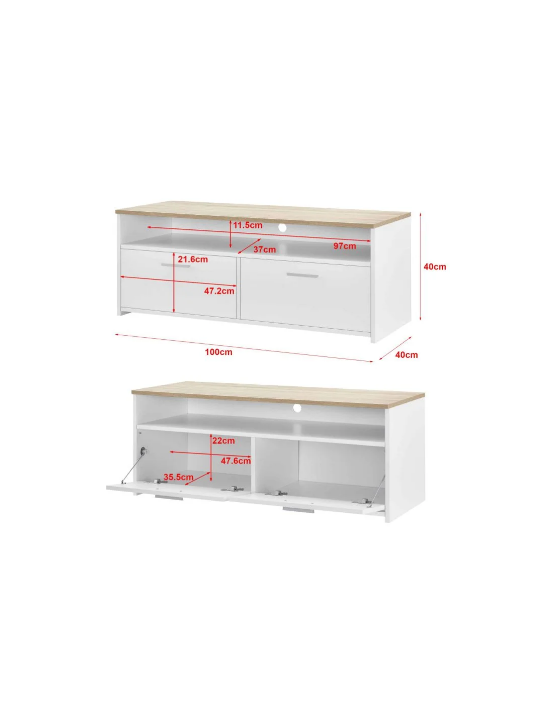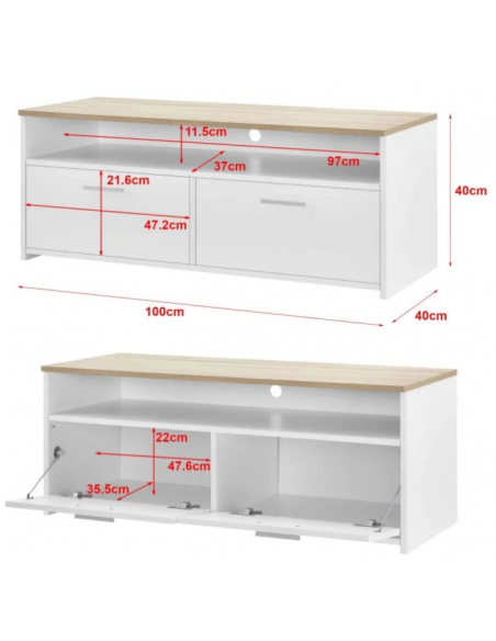 Tvbord i møbelplade H40 x B100 x D40 cm - Hvid/Natur