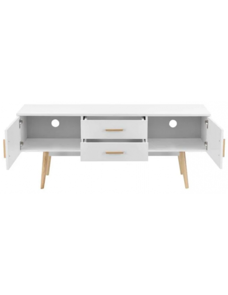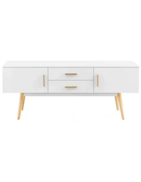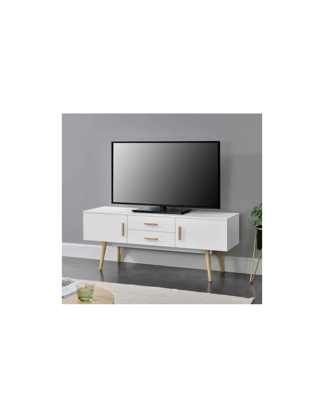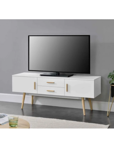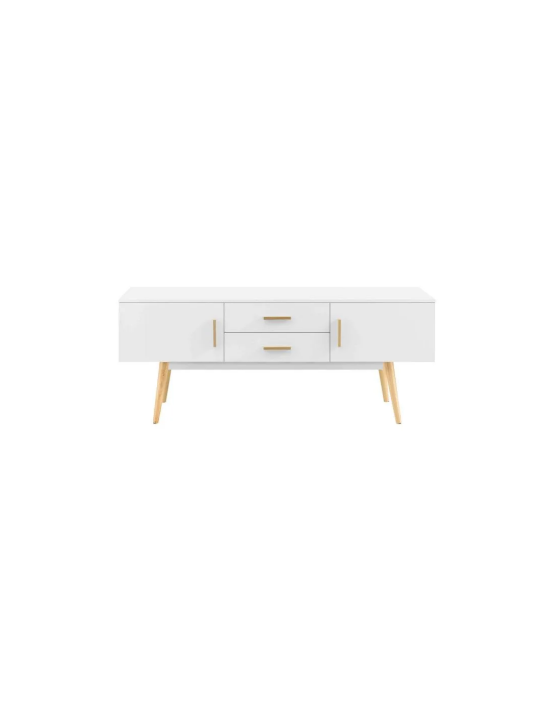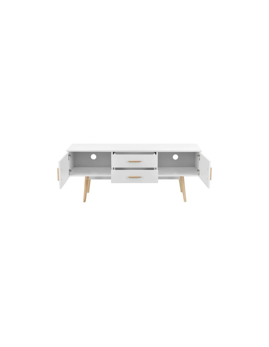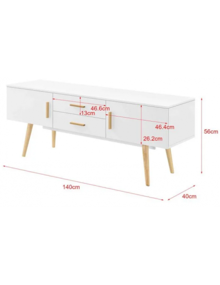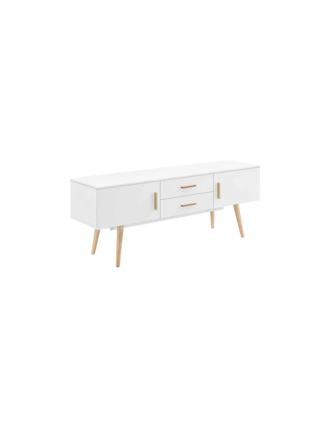 Tvbord i træ og møbelplade H56 x B140 x D40 cm - Hvid/Natur