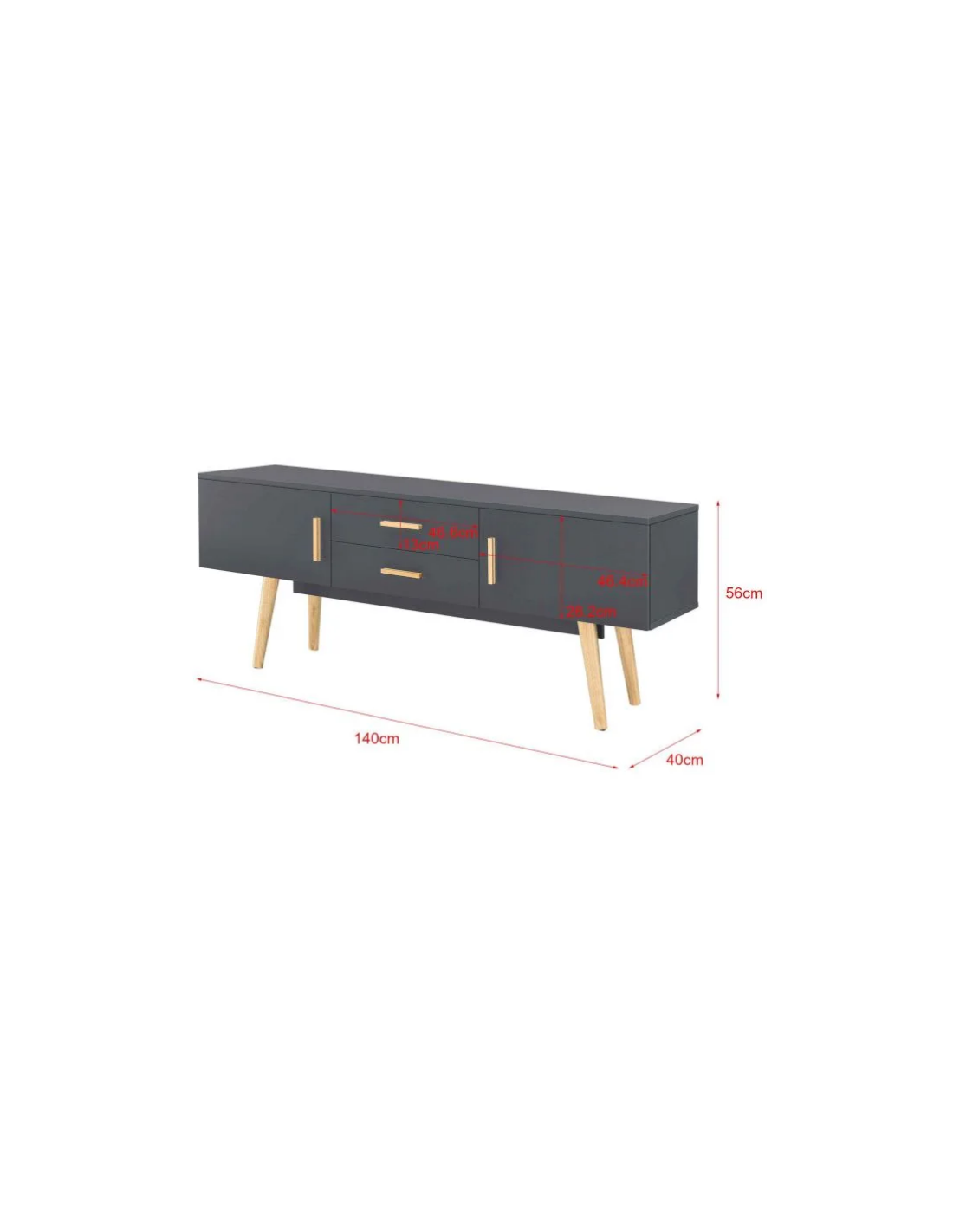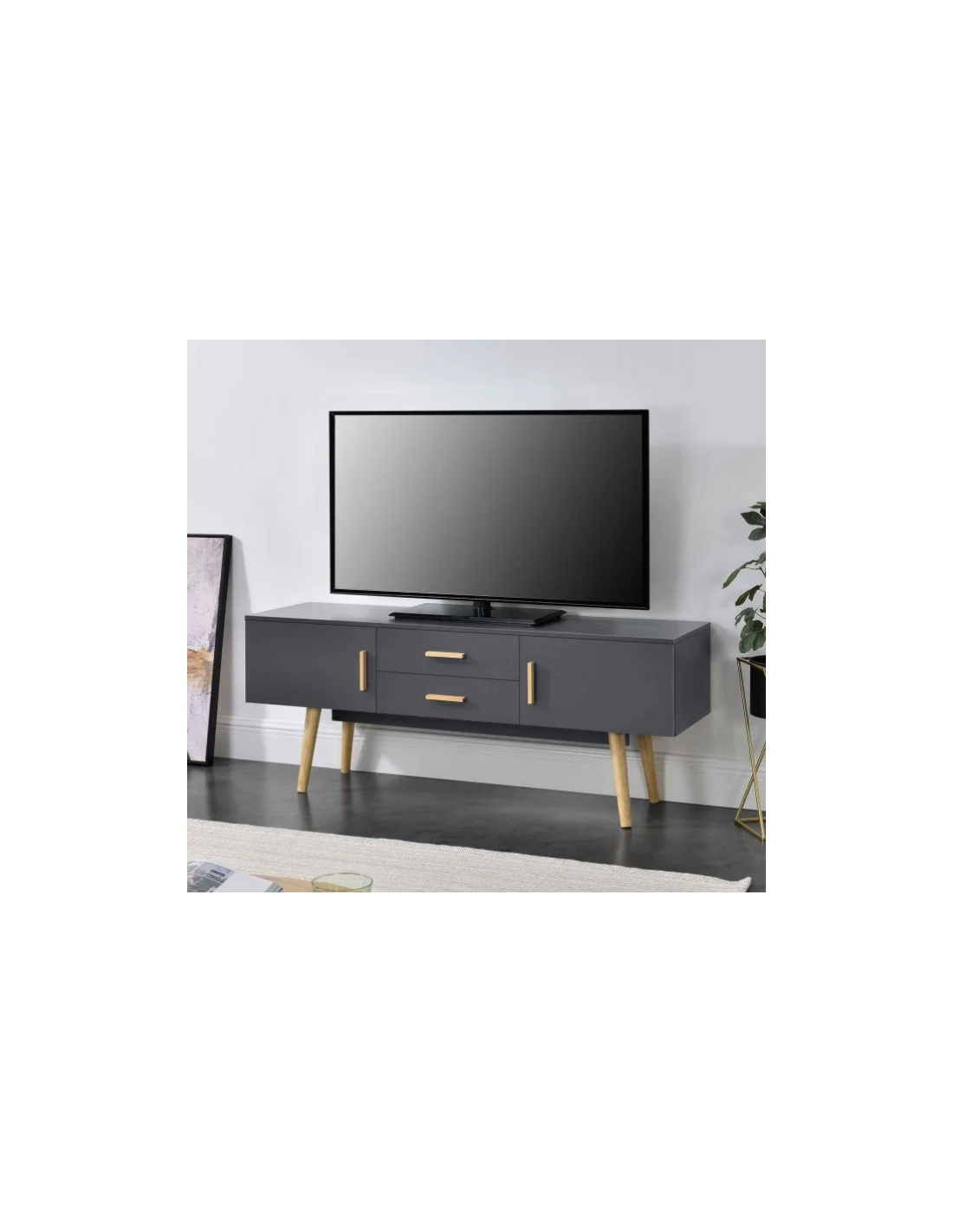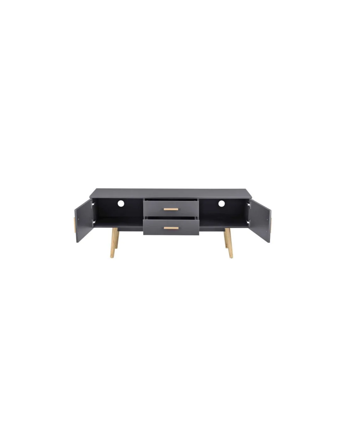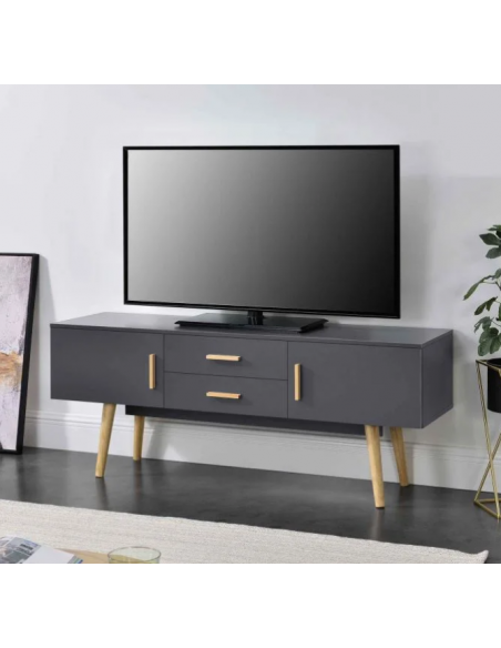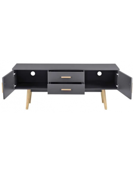 Tvbord i træ og møbelplade H56 x B140 x D40 cm - Mørkegrå/Natur