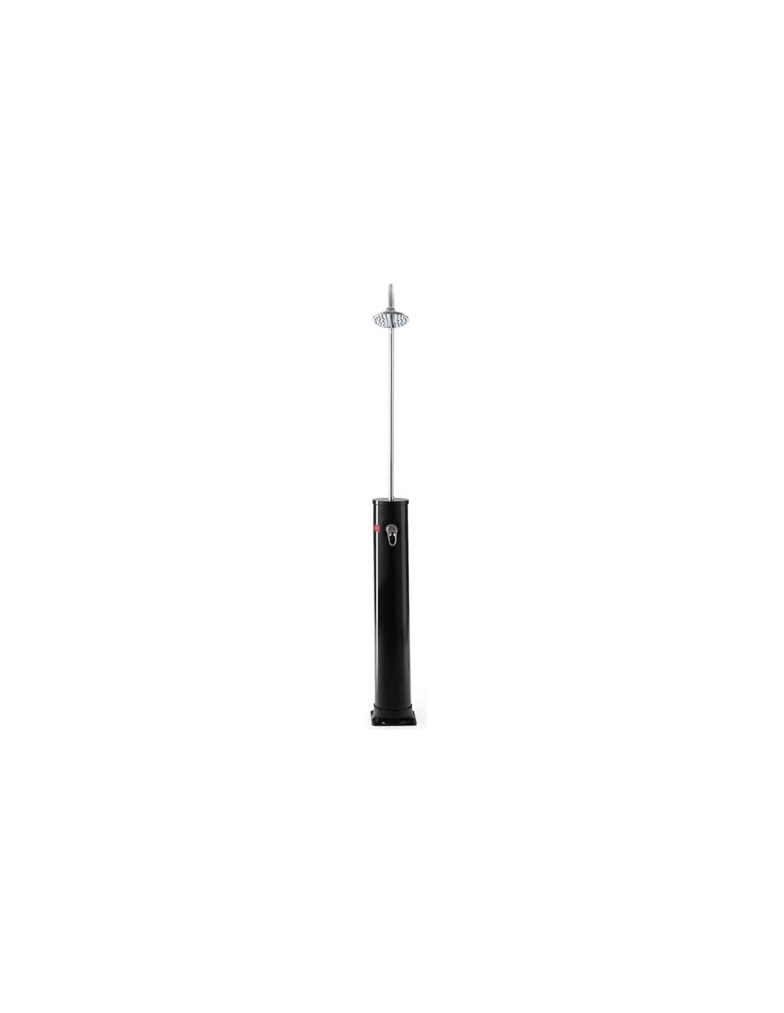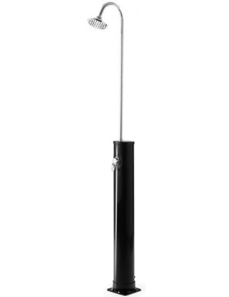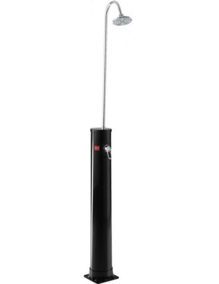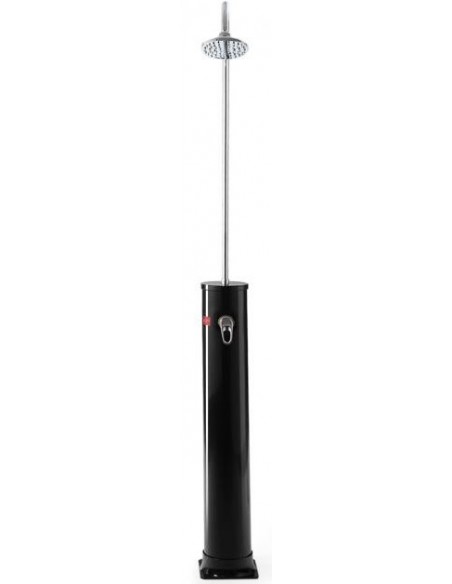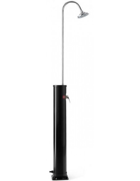 Solopvarmet udebruser til haveslange, udført i et design af sort kunststof og metal. Udebruseren måler 213 cm i højden og har termostat. Vandet kan opvarmes op til 60 grader. Udebruseren kan rumme 20 liter.