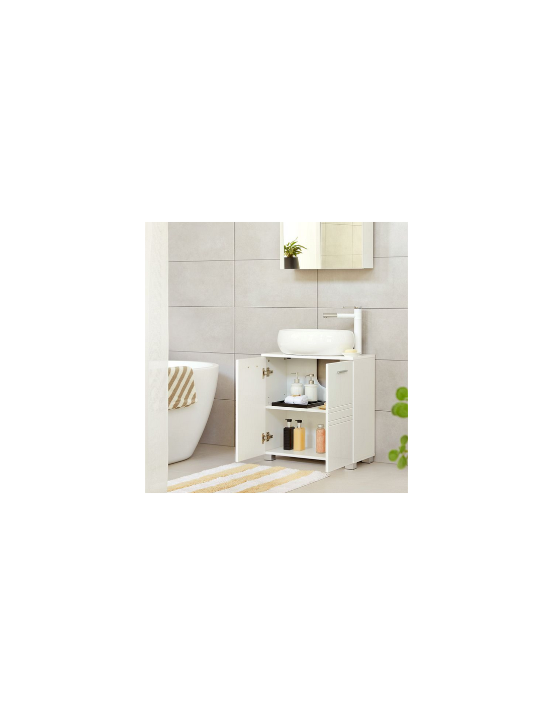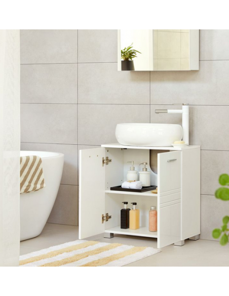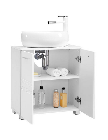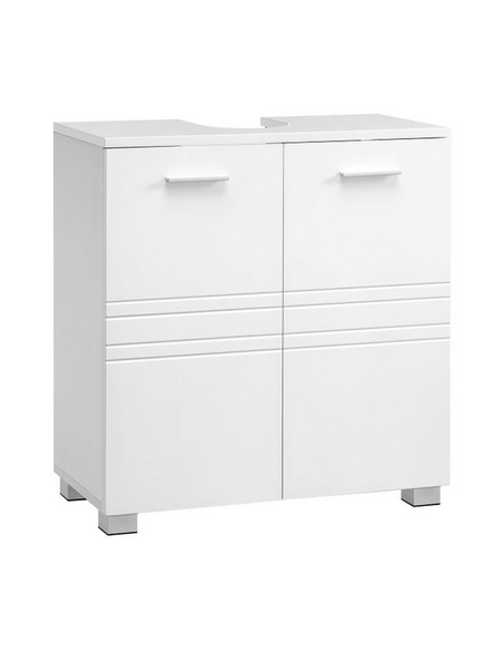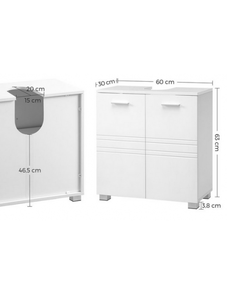 Underskab til håndvask, udført i et design af hvid mdf. Underskabet måler 63 cm i højden og 60 x 30 cm i bredde og dybde. Skabet indeholder 1 justerbar hylde og har en udskæring til afløb.