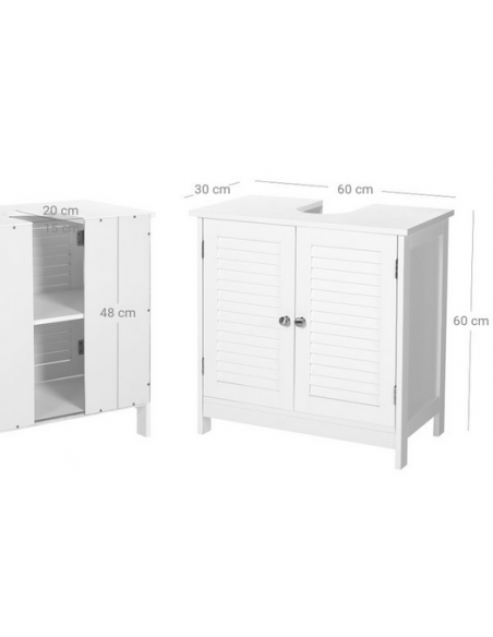 Underskab til håndvask, udført i et design af hvid mdf. Underskabet måler 60 cm i højden og 60 x 30 cm i bredde og dybde.