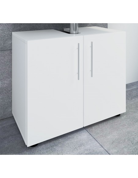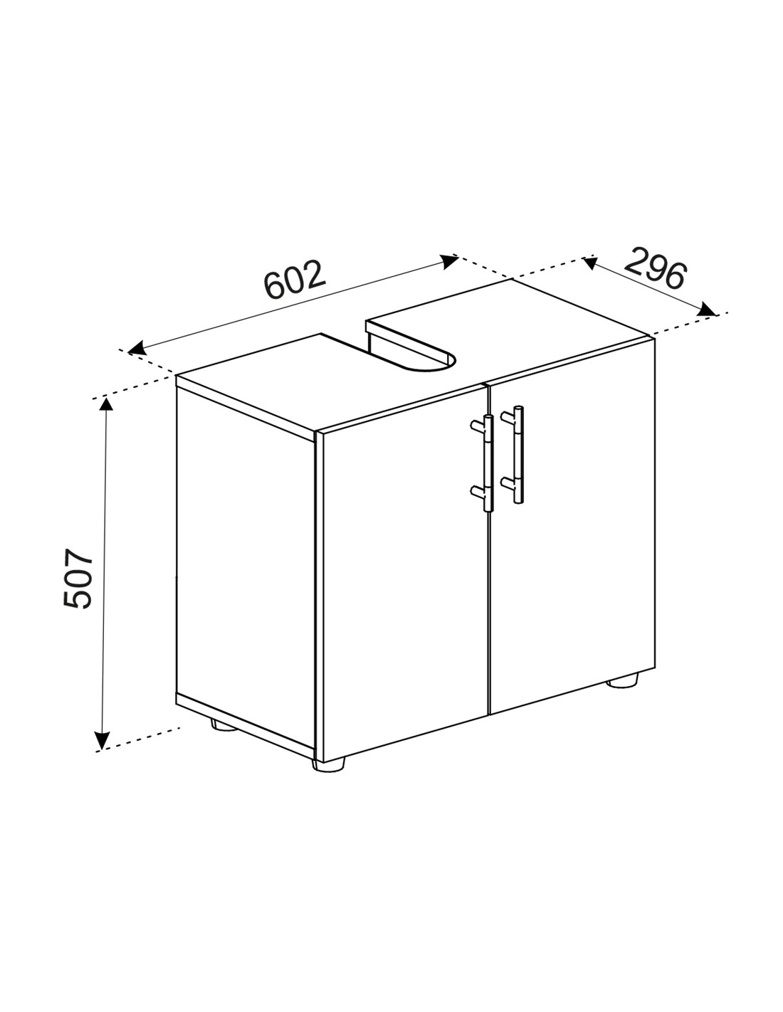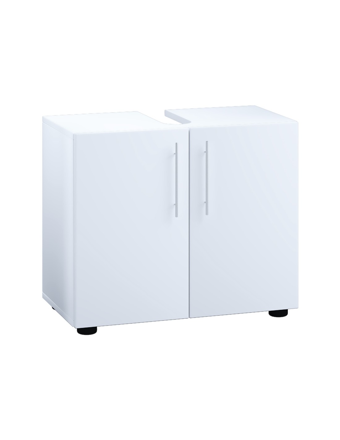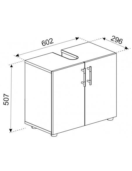 Underskab til håndvask, udført i et design af hvid møbelplade. Underskabet måler 50,7 cm i højden og 60,2 x 29,6 cm i bredde og dybde.