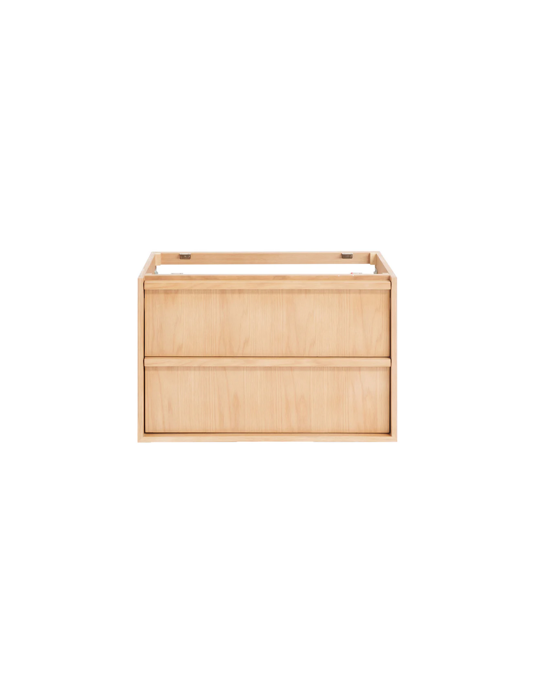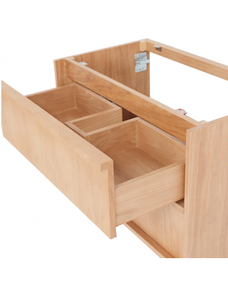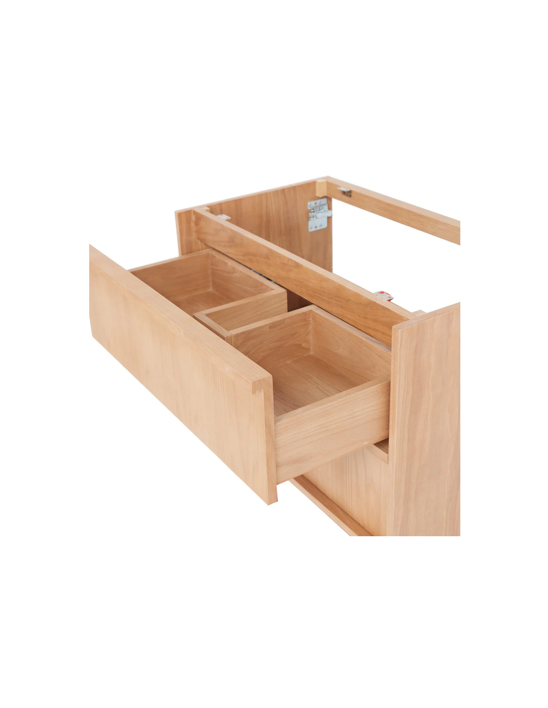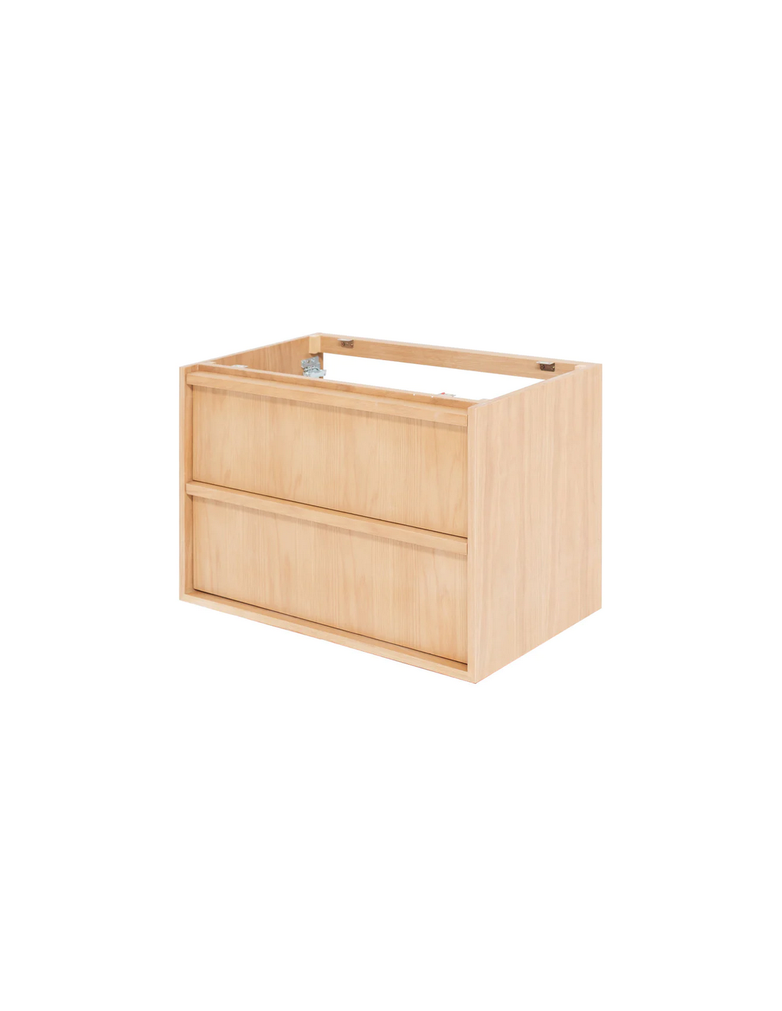 Vægmonteret underskab til håndvask og topplade, udført i et design af egetræsfarvet MDF. Underskabet måler 51 cm i højden og 80 x 45 cm i bredde og dybde (ydermål). Til underskabet kan eksempelvis anvendes topplade (Klik her) hvor topplader med bredden 80 cm passer. I skabet forefindes 2 skuffer.