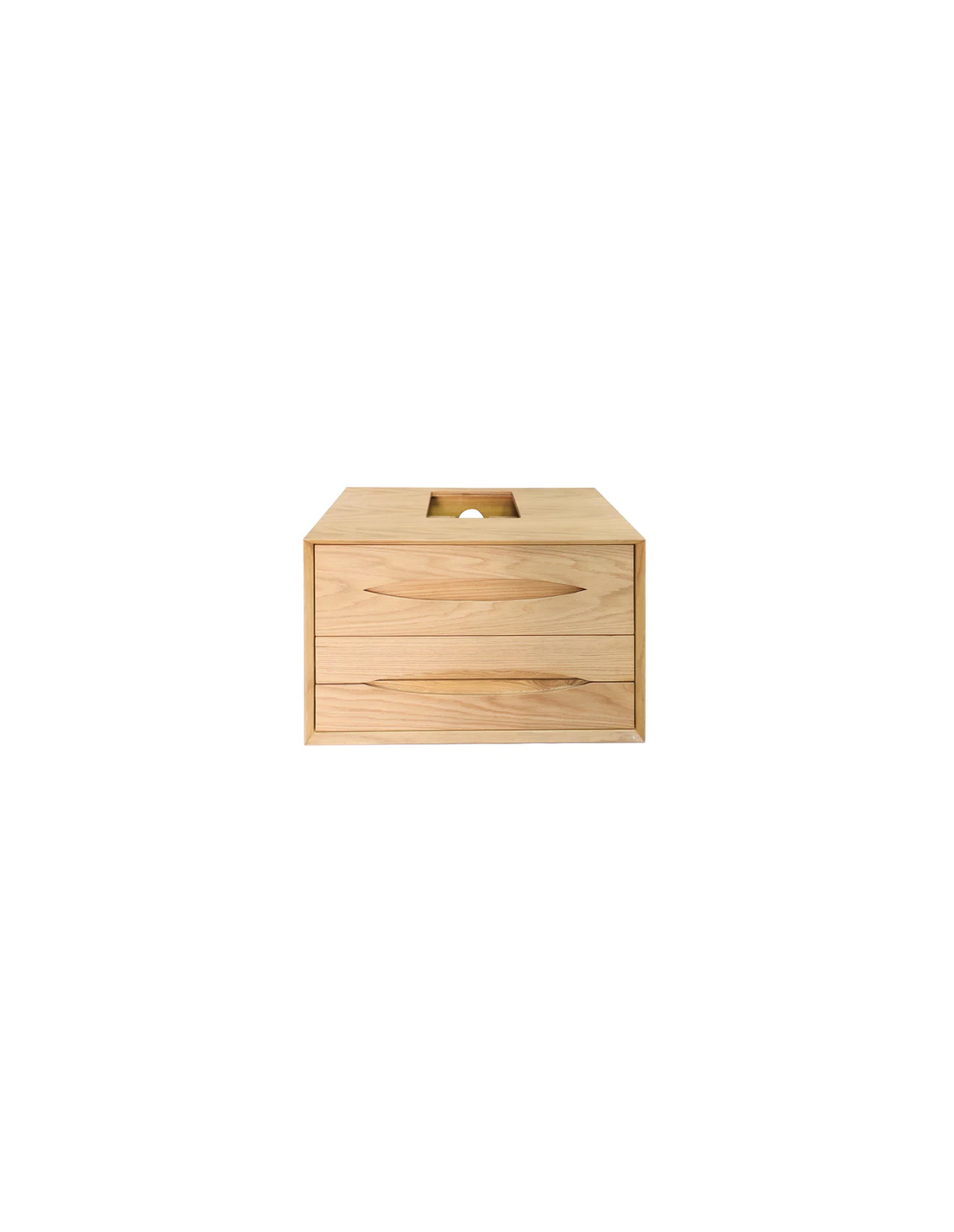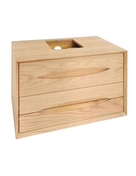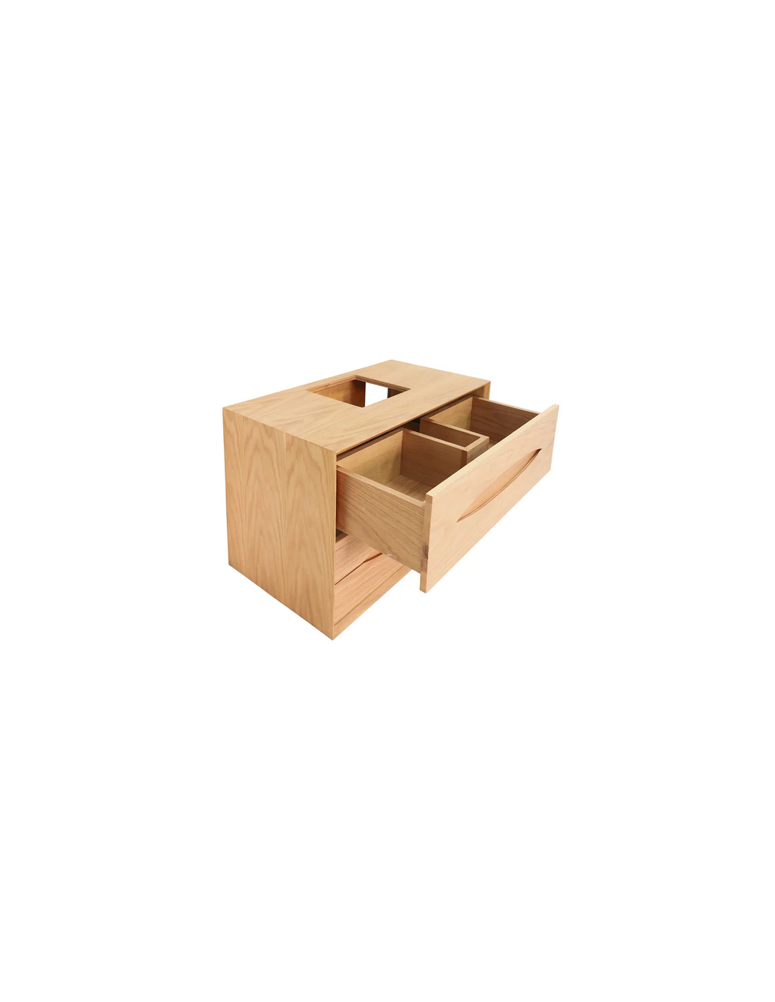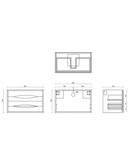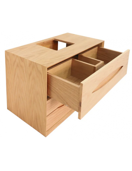 Vægmonteret underskab til håndvask og topplade, udført i et design af egetræsfarvet MDF. Underskabet måler 50 cm i højden og 80 x 45 cm i bredde og dybde (ydermål). Til underskabet kan eksempelvis anvendes topplade (Klik her) hvor topplader med bredden 80 cm passer. I skabet forefindes 2 skuffer.