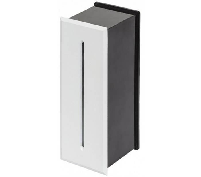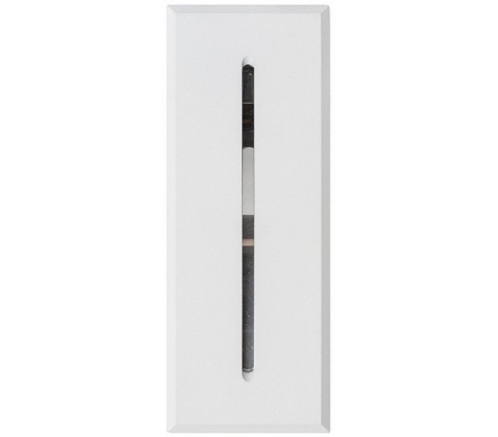 Segno udendørs væglampe til indbygning, udført i et moderne design af hvidlakeret aluminium og nedadgående belysning med 3W LED lyskilde. Lampen måler 17 x 6,5 cm i bredde og højde (frontmål).