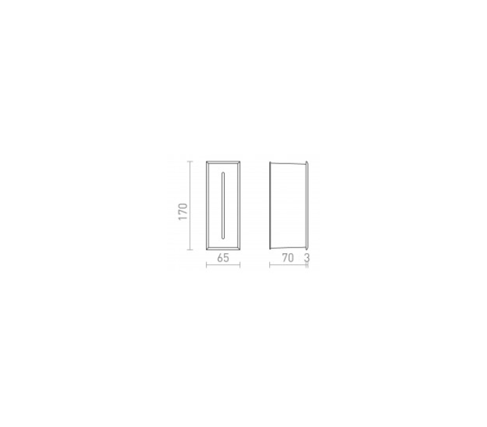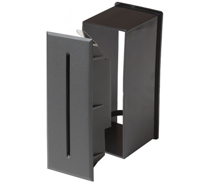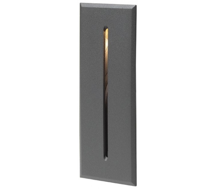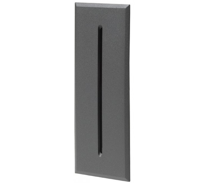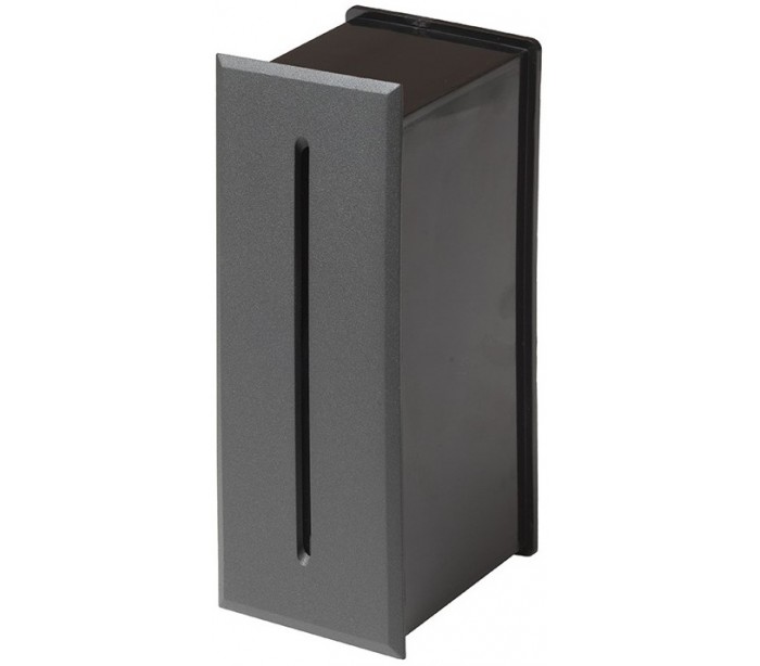 Segno udendørs væglampe til indbygning, udført i et moderne design af antracitlakeret aluminium og nedadgående belysning med 3W LED lyskilde. Lampen måler 17 x 6,5 cm i bredde og højde (frontmål).