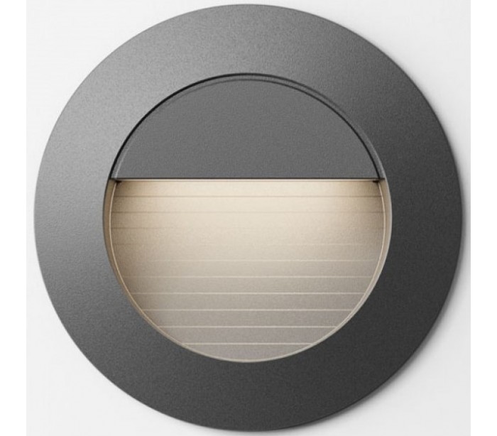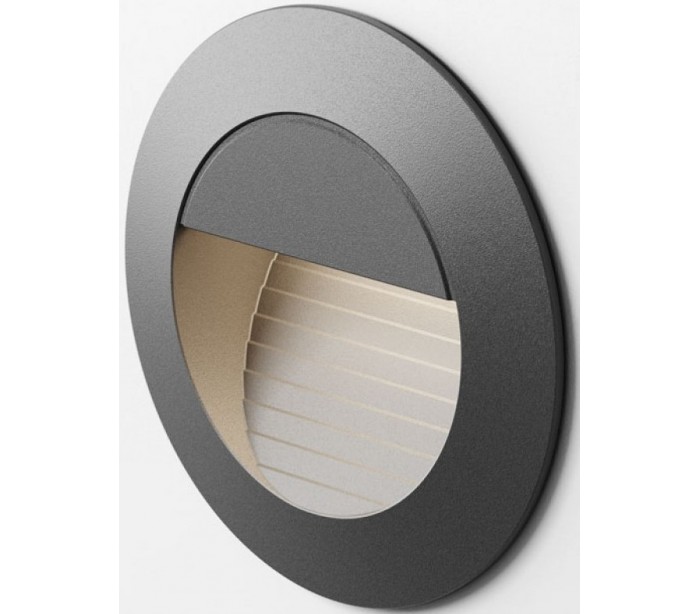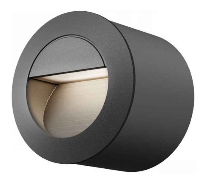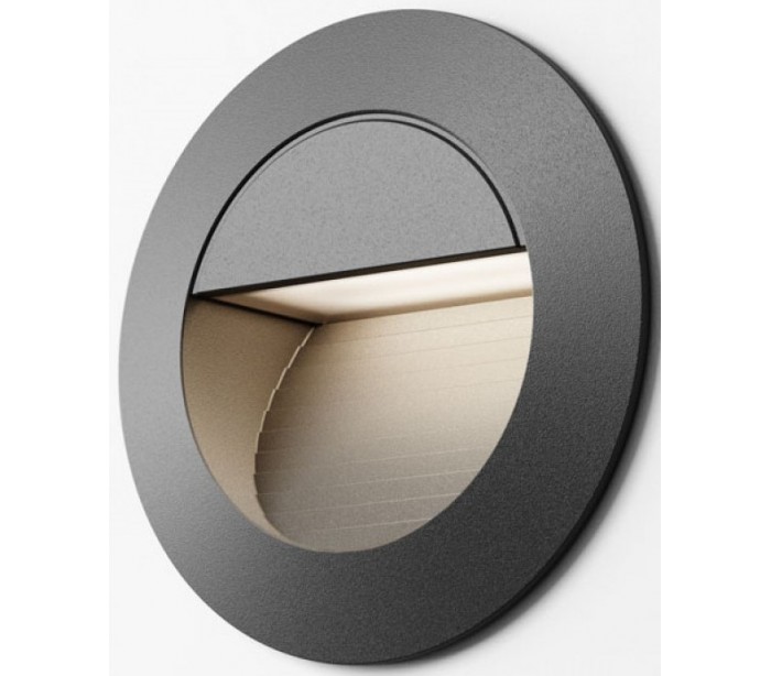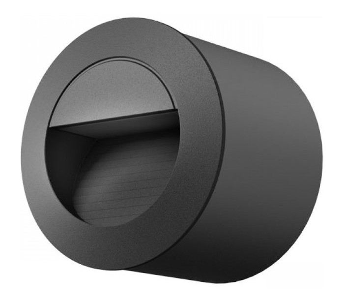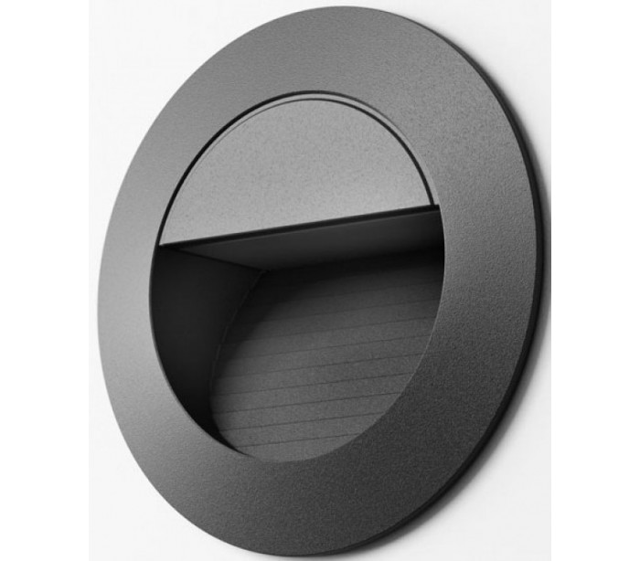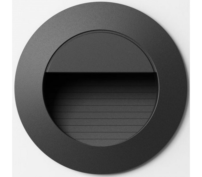 Marco udendørs væglampe til indbygning, udført i et moderne design af sortlakeret aluminium og nedadgående belysning med 3W LED lyskilde. Lampen måler 7,8 cm i diameter (frontmål).