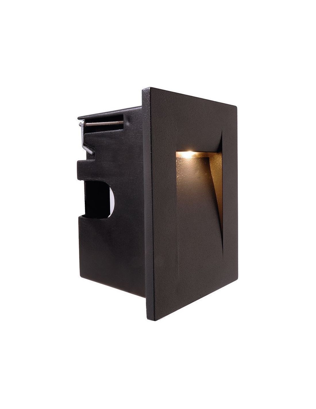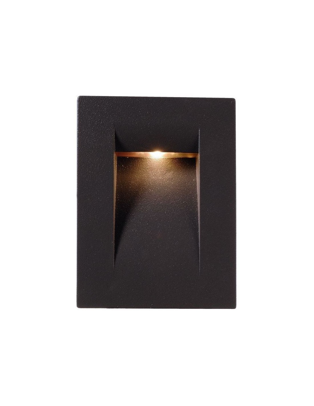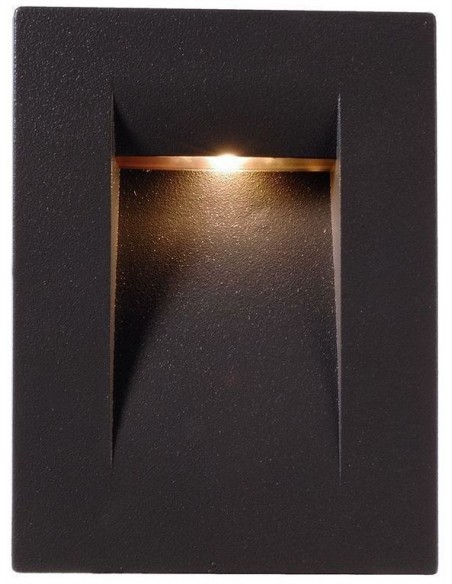 Væglampe til indbygning i et moderne design, fremstillet i antracit aluminium. Lampen måler 10,7 x 7,5 cm i højde og bredde. Lampen har indbygget LED modul på 3,6W.