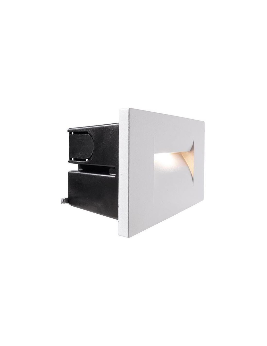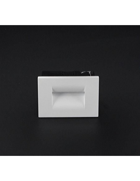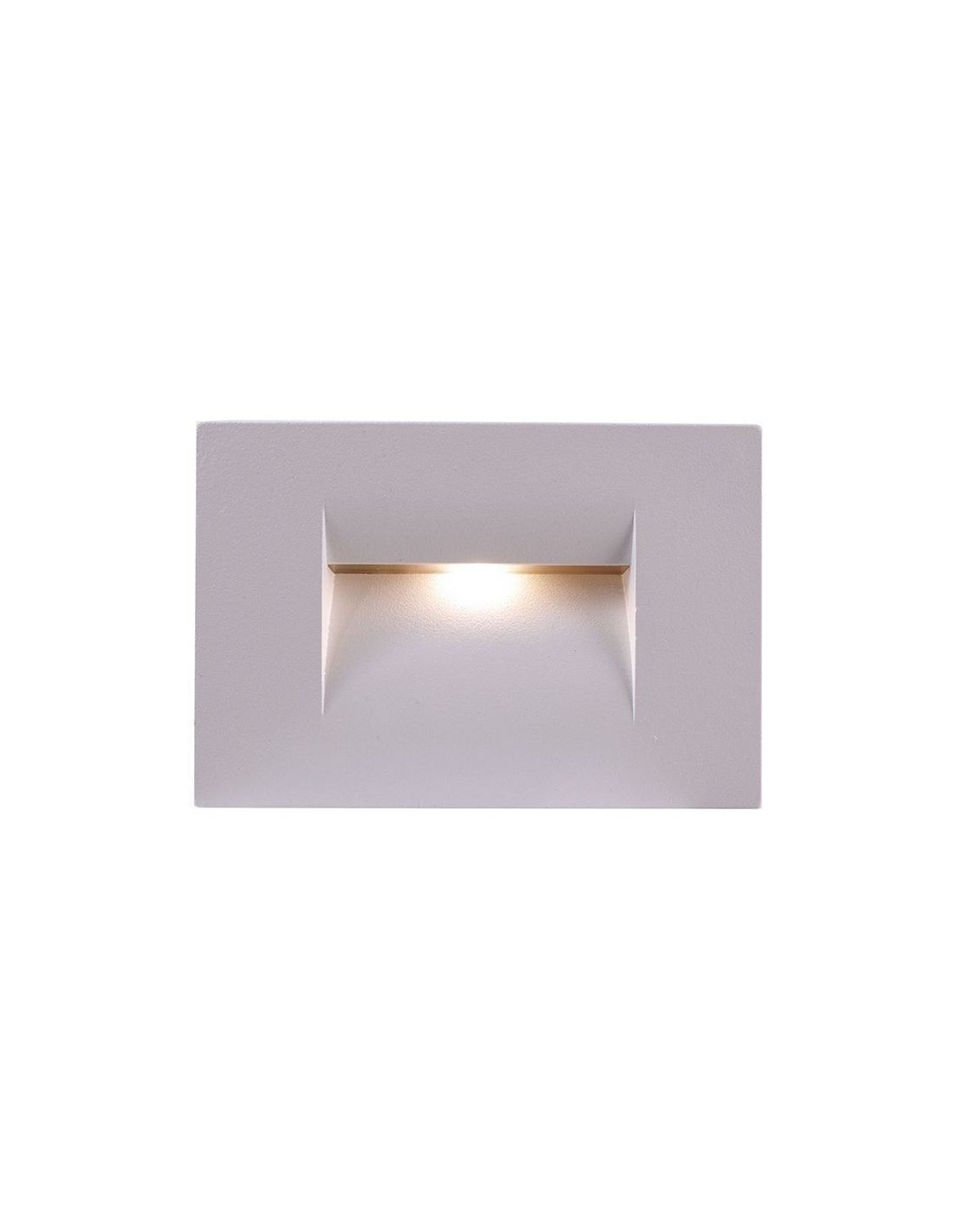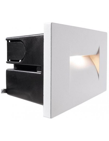 Væglampe til indbygning i et moderne design, fremstillet i hvidlakeret aluminium. Lampen måler 10,7 x 7,5 cm i højde og bredde. Lampen har indbygget LED modul på 5W.
