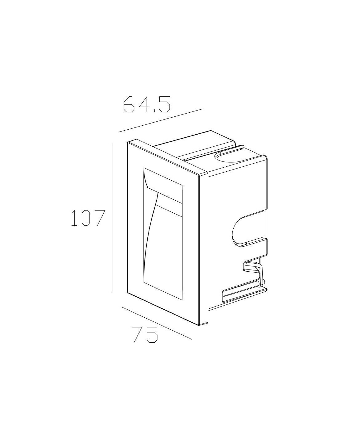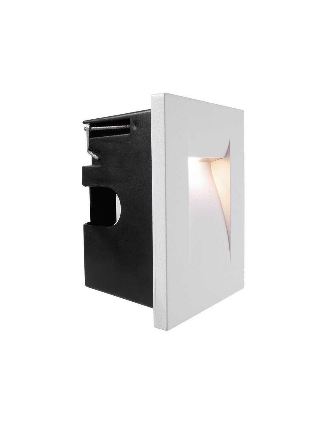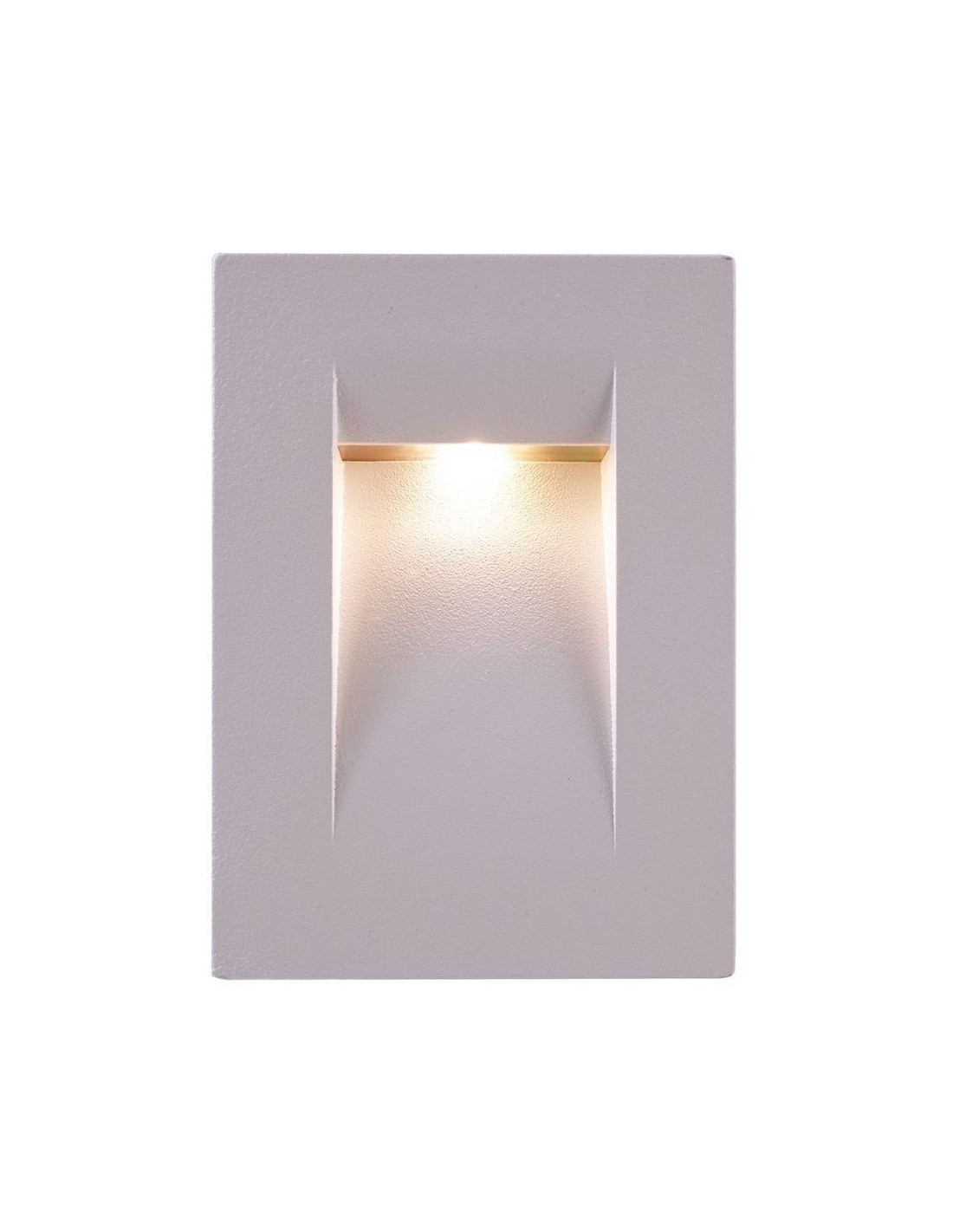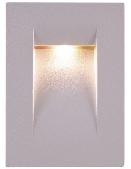 Væglampe til indbygning i et moderne design, fremstillet i hvidlakeret aluminium. Lampen måler 10,7 x 7,5 cm i højde og bredde. Lampen har indbygget LED modul på 5W.