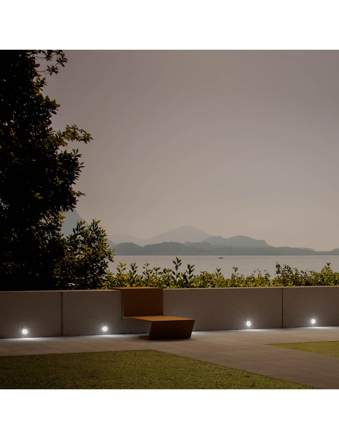 XPI udendørs væglampe til indbygning, udført i et design i stål og polycarbonat. Lampen måler 5 cm i diameter på selve frontcoveret. Lampen anvender 1 x 2,3W SMD LED lyskilde (Inkl.).