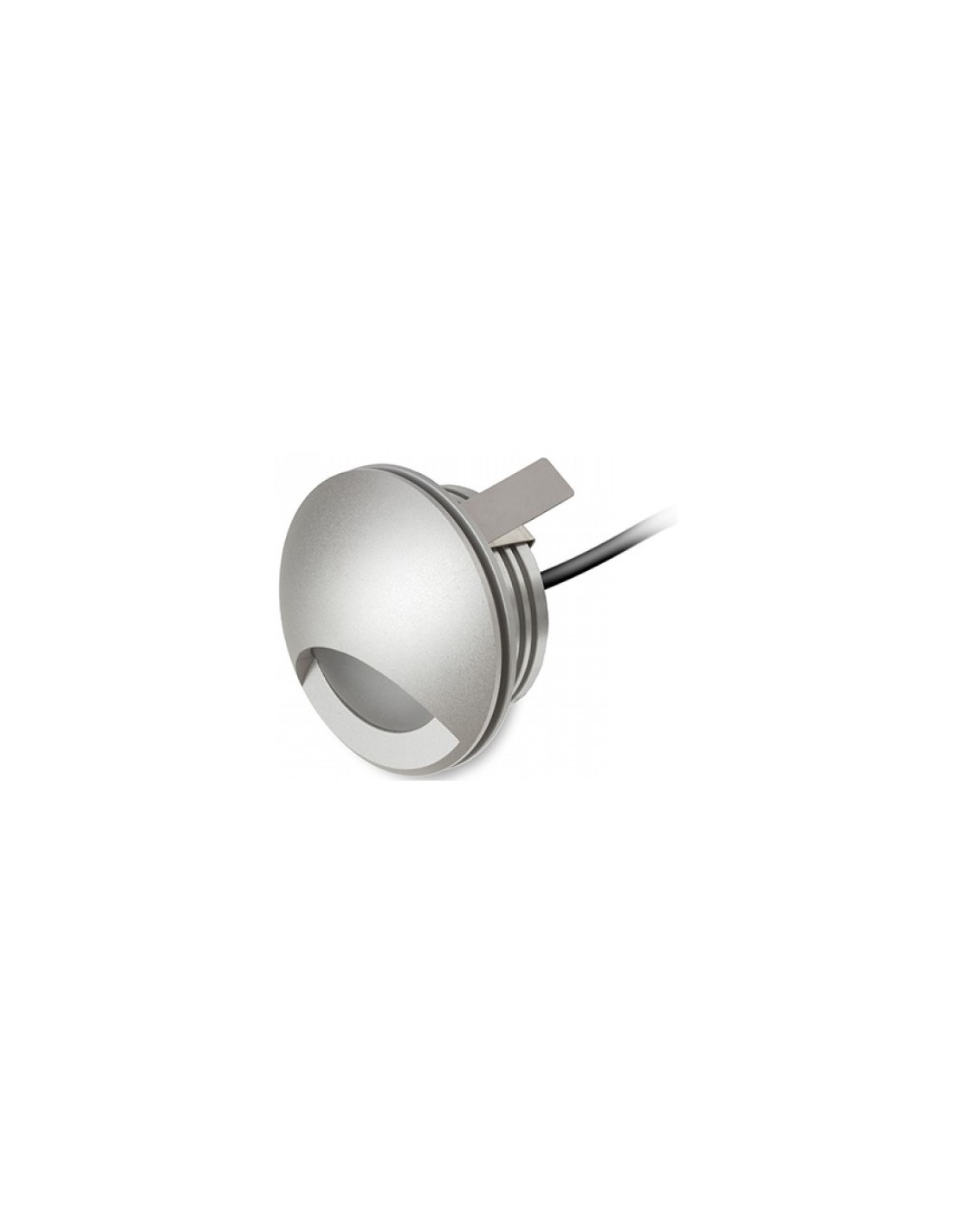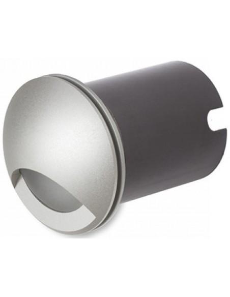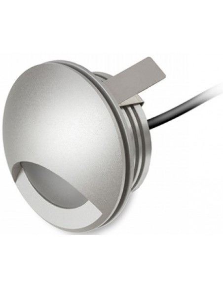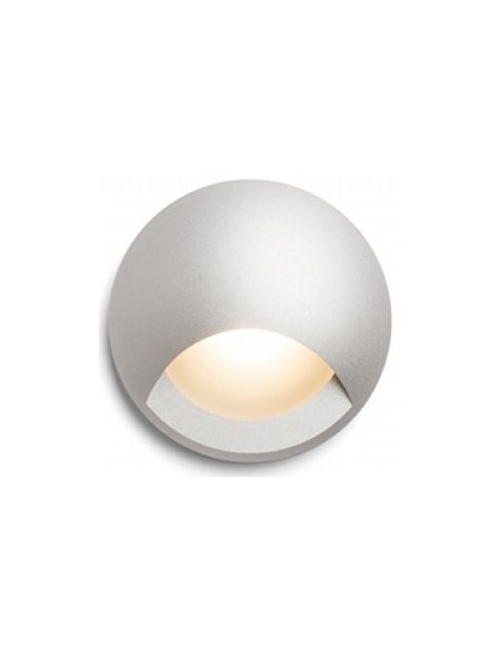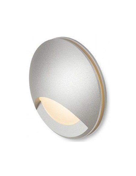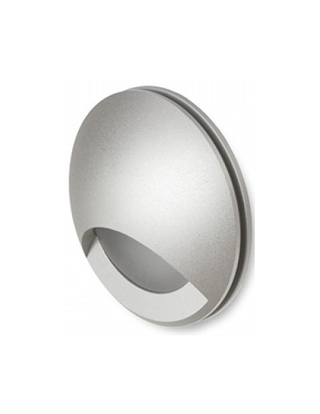 CLUB udendørs væglampe til indbygning, udført i et moderne design af sølvgrå aluminium og med 3W LED lyskilde. Lampen måler 5,8 cm i diameter (frontmål).
