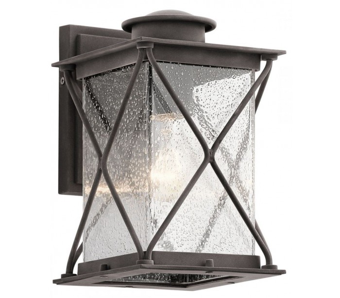 Argyle udendørs væglampe i et rustikt design fra amerikanske Kichler. Væglampen leveres til europæisk standard til 1 x E27 lyskilde. Lampen måler 26,1 cm i højden og 16,6 cm i bredden.