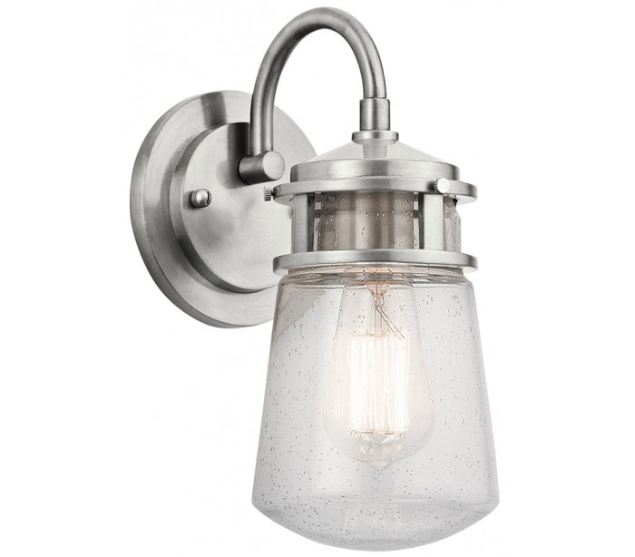 Lyndon udendørs væglampe i et rustikt design fra amerikanske Kichler. Væglampen leveres til europæisk standard til 1 x E27 lyskilde. Lampen måler 28,6 cm i højden og 12,7 cm i bredden.