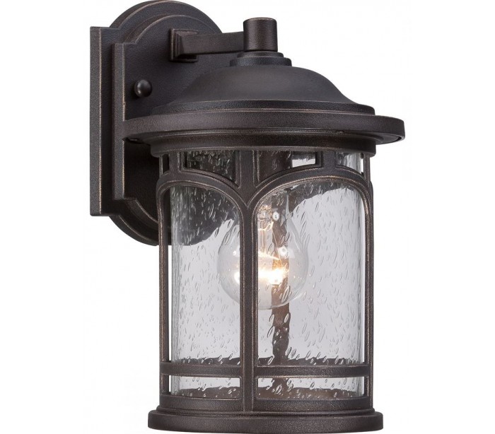 Marblehead væglampe i et rustikt design fra amerikanske Quoizel. Lampen leveres til europæisk standard til 1 x E27 lyskilde og måler 28,1 cm i højden og 17,8 cm i bredden.