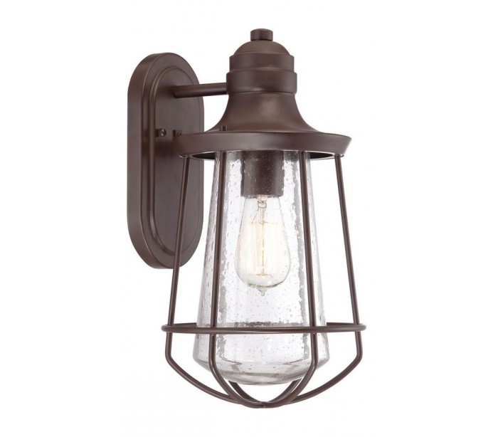 Marine væglampe i et rustikt design fra amerikanske Quoizel. Lampen leveres til europæisk standard til 1 x E27 lyskilde og måler 38,1 cm i højden og 20,3 cm i bredden.