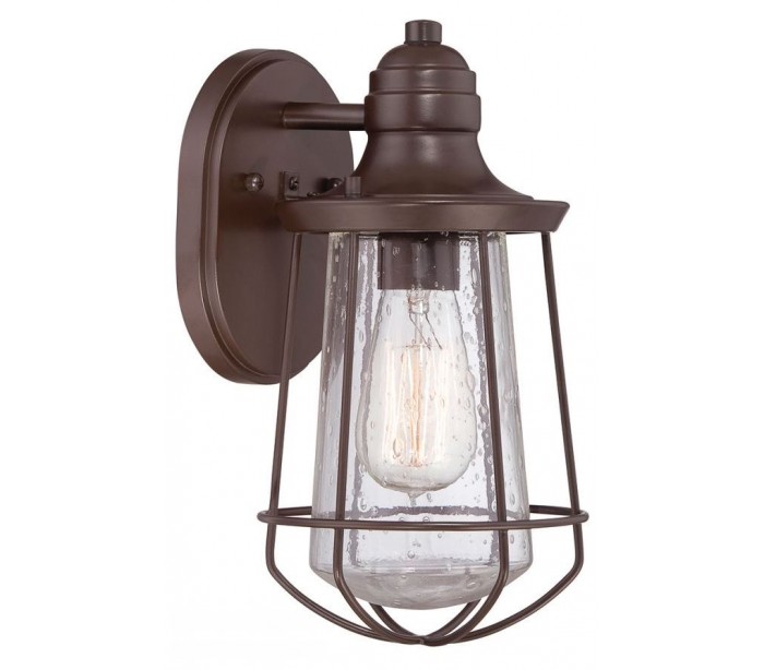 Marine væglampe i et rustikt design fra amerikanske Quoizel. Lampen leveres til europæisk standard til 1 x E27 lyskilde og måler 29,2 cm i højden og 15,2 cm i bredden.