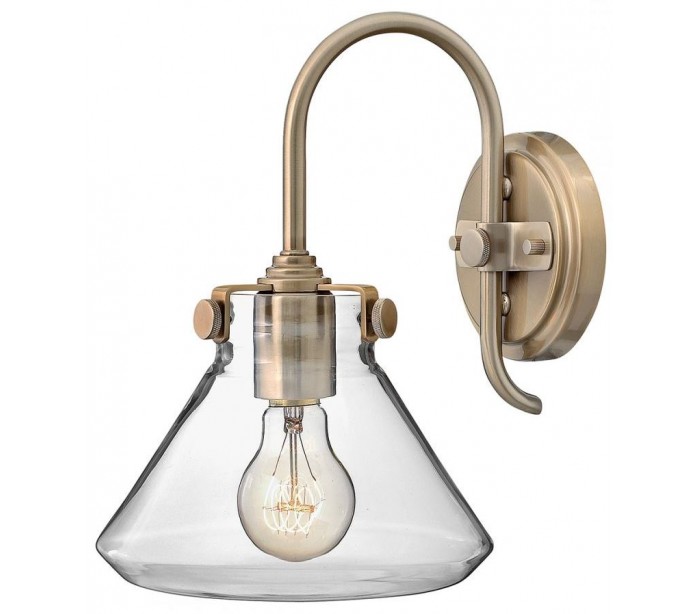 Congress væglampe i et amerikansk design fra Hinkley. Lampen måler 28,6 cm i højden og leveres til europæisk standard til 1 x E27 lyskilde. Lampen er udført i et design af børstet karamellakeret stål og skærm i glas.