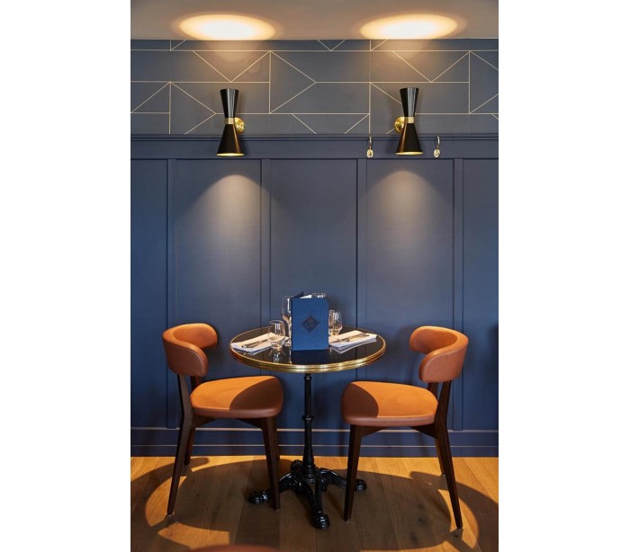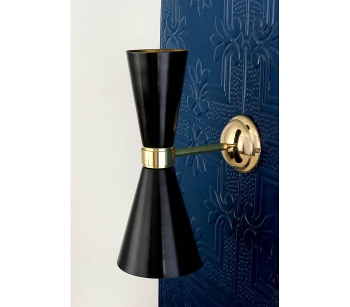 Cairo væglampe fremstillet i et moderne design i poleret messing og med skærm i sortlakeret stål. Lampen måler 33 cm i højden og anvender 2 x GU10 LED lyskilder (Ekskl.).
