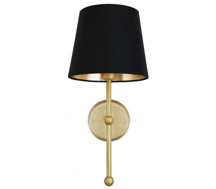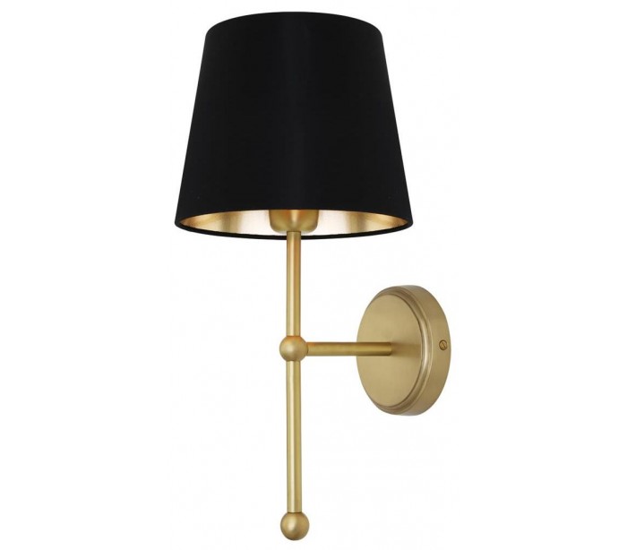 California væglampe fremstillet i et moderne design i satineret messing og med skærm i sort tekstil. Lampen måler 45 cm i højden og anvender 1 x E27 lyskilde (Ekskl.).
