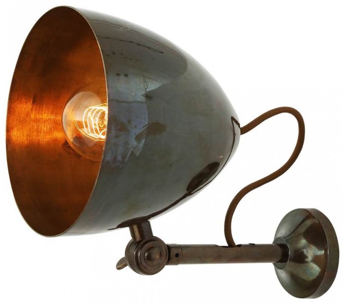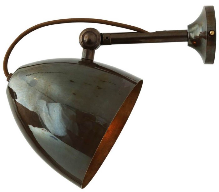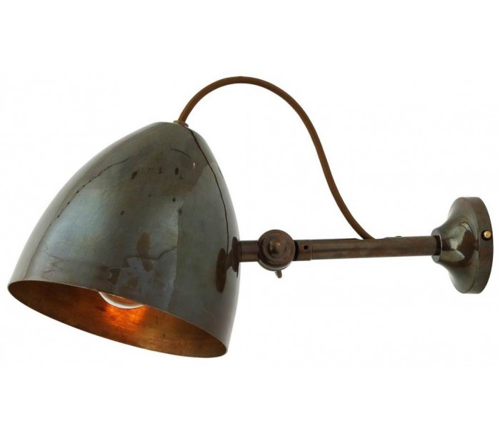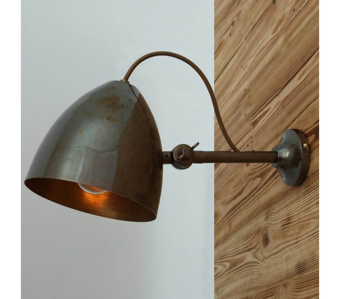 Quito væglampe fremstillet i et industrielt design i antik messing. Lampen måler 17 - 22 cm i højden og anvender 1 x E27 lyskilde (Ekskl.). Lampehovedet er kipbart.