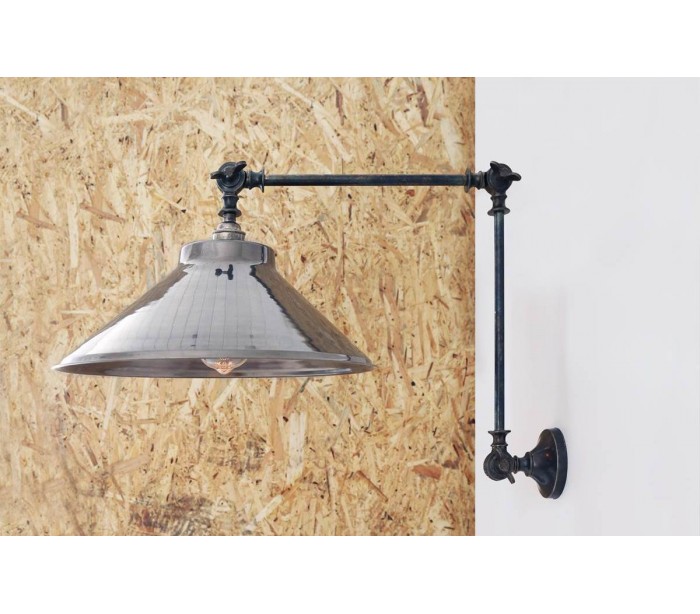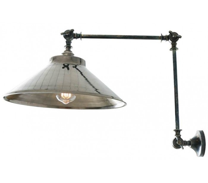 Rio væglampe fremstillet i et industrielt design i antik sølvlakeret messing. Lampen måler 36 - 50 cm i højden og anvender 1 x E27 lyskilde (Ekskl.). Lampen er multi justerbar.