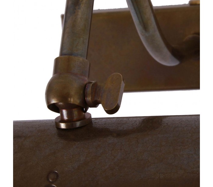 Spence væglampe fremstillet i et industrielt design i antik messing. Lampen måler 30,5 cm i bredden og anvender 2 x G9 lyskilder (Ekskl.). Lampehovedet er kipbart og lampen er ideel til ovenbelysning af malerier.