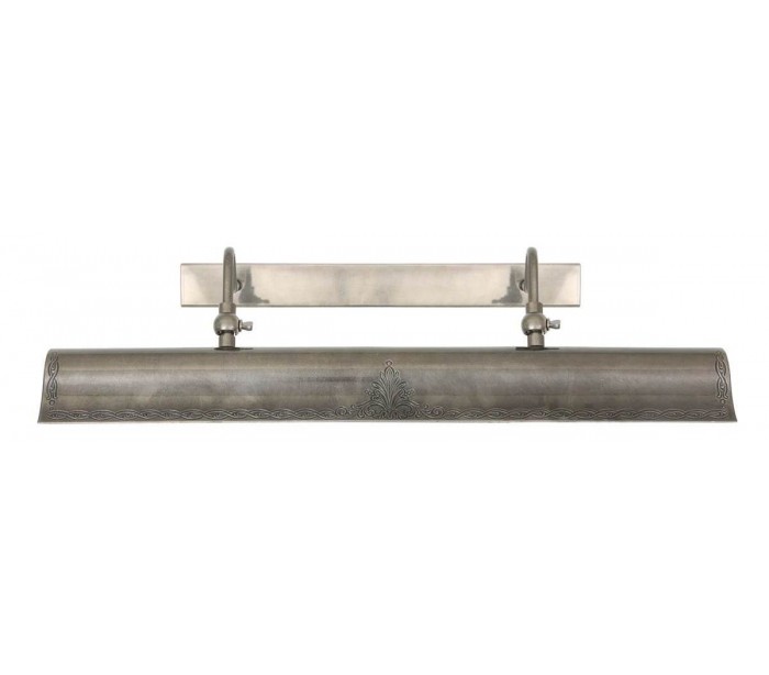 Spence væglampe fremstillet i et industrielt design i antik sølvlakeret messing. Lampen måler 60 cm i bredden og anvender 4 x G9 lyskilder (Ekskl.). Lampehovedet er kipbart og lampen er ideel til ovenbelysning af malerier.